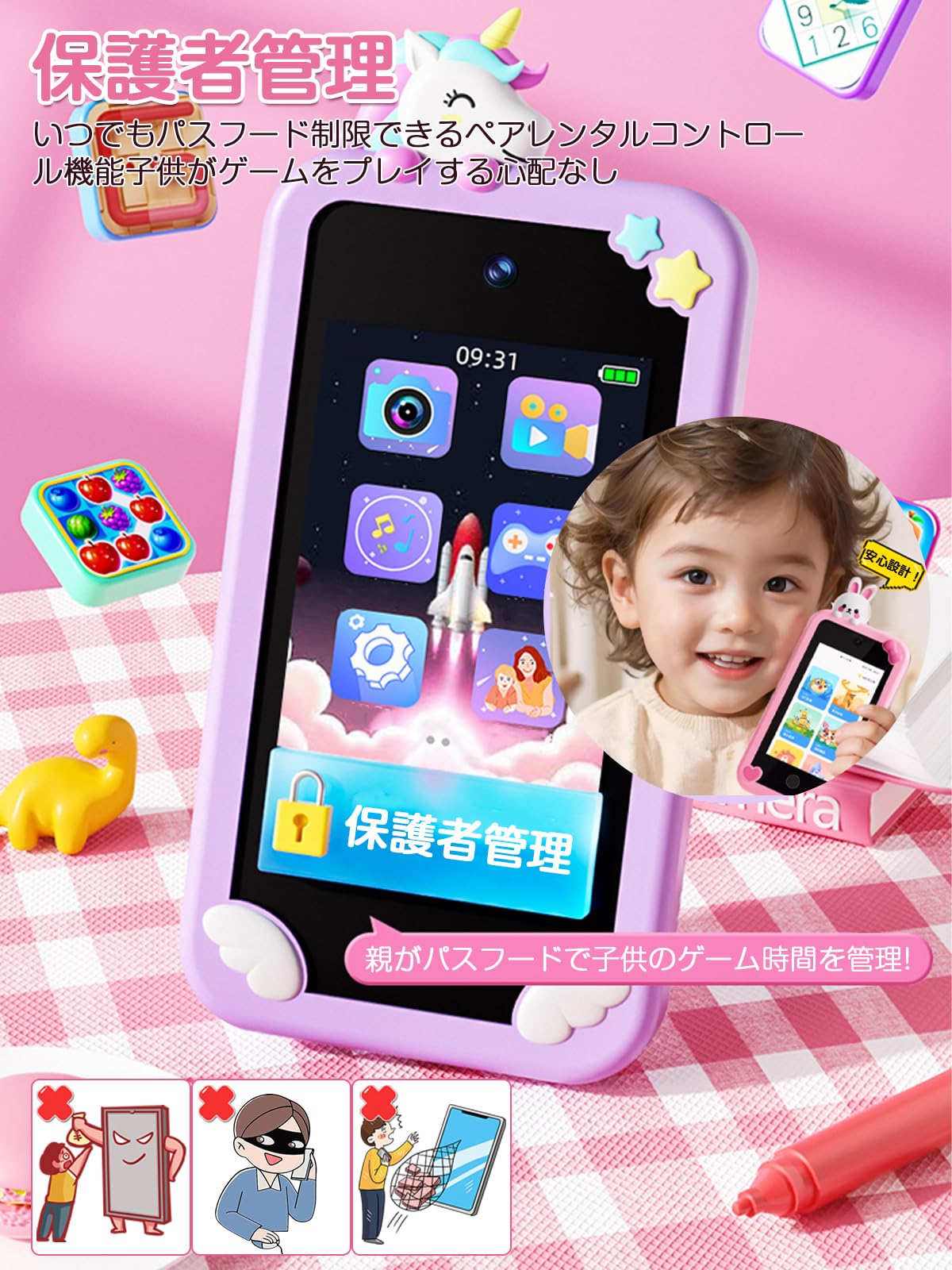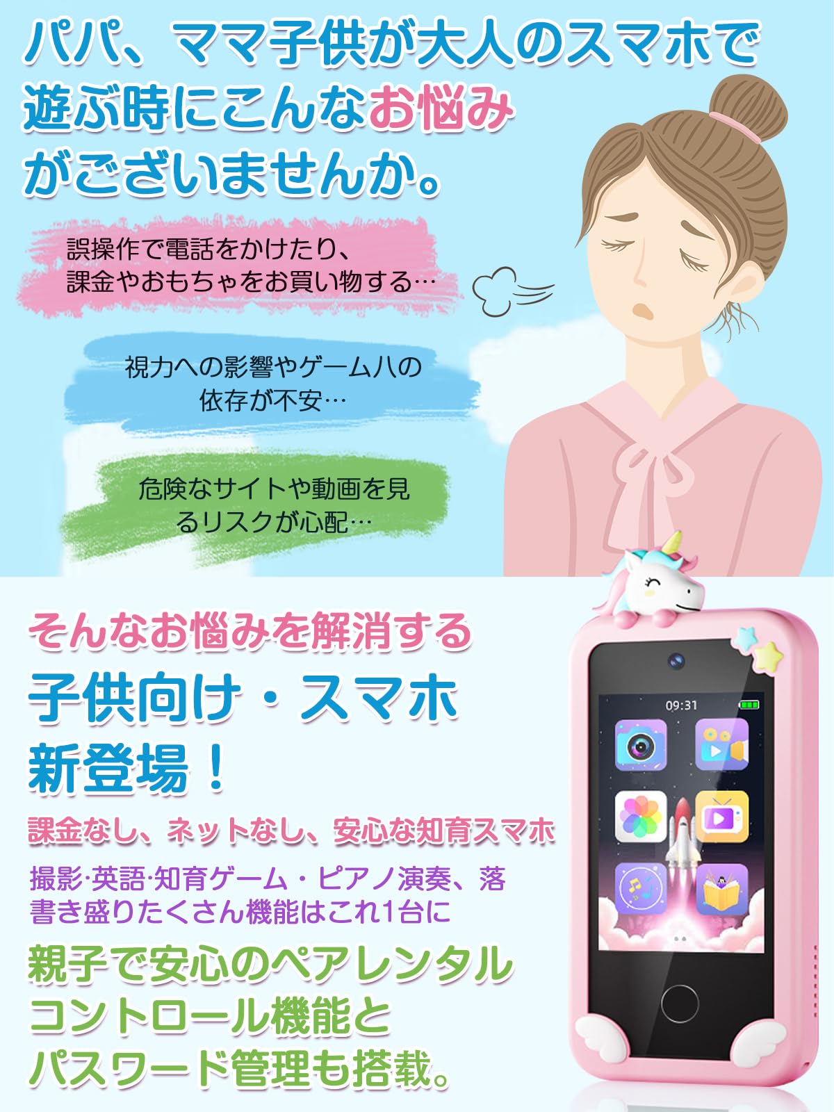 * 【知育ゲーム搭載】スマホで遊びながら楽しく反応力・想像力を育てます。通常のスマホと違い、遊びながら学べます。