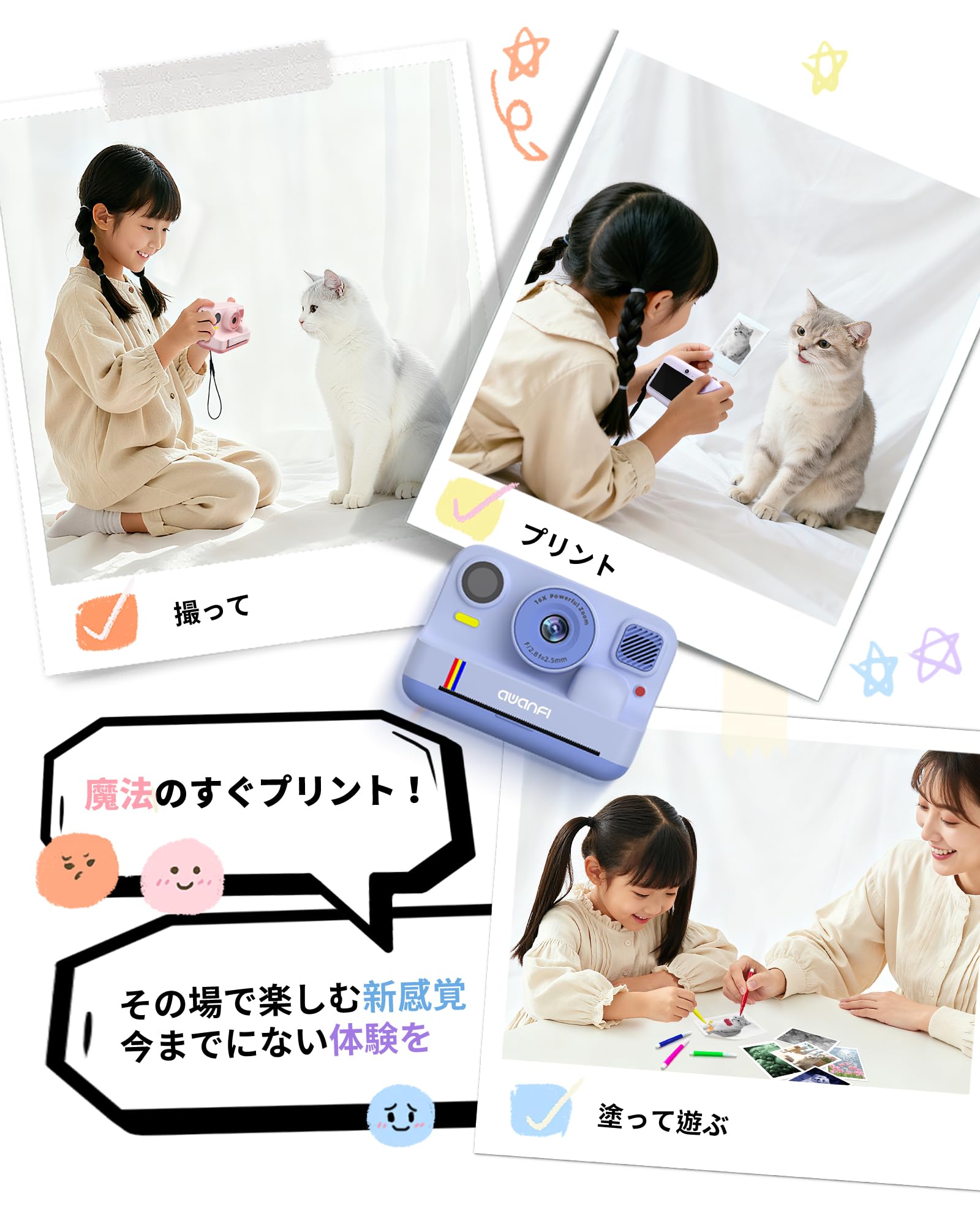 * 【2025大人気の子供インスタントカメラ】多機能ですが、画面簡単、操作やすくて、子供に最適なデジタルカメラです。写真を撮った後、すぐにプリントできます。今までにない体験を。また、カメラの写真をPCに転送でき、アプリ連携でスマホの思い出の写真もカメラでプリントできます。大人でも楽しめます!