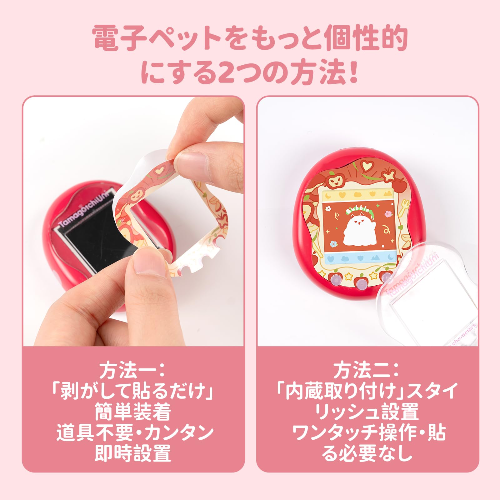 * 【2種類のスキン交換方法】:方法一:「剥がして貼るだけ」簡単装着、道具不要·カンタン即時設置。 方法二:「内蔵取り付け」スタイリッシュ設置、ワンタッチ操作・貼る必要なし。