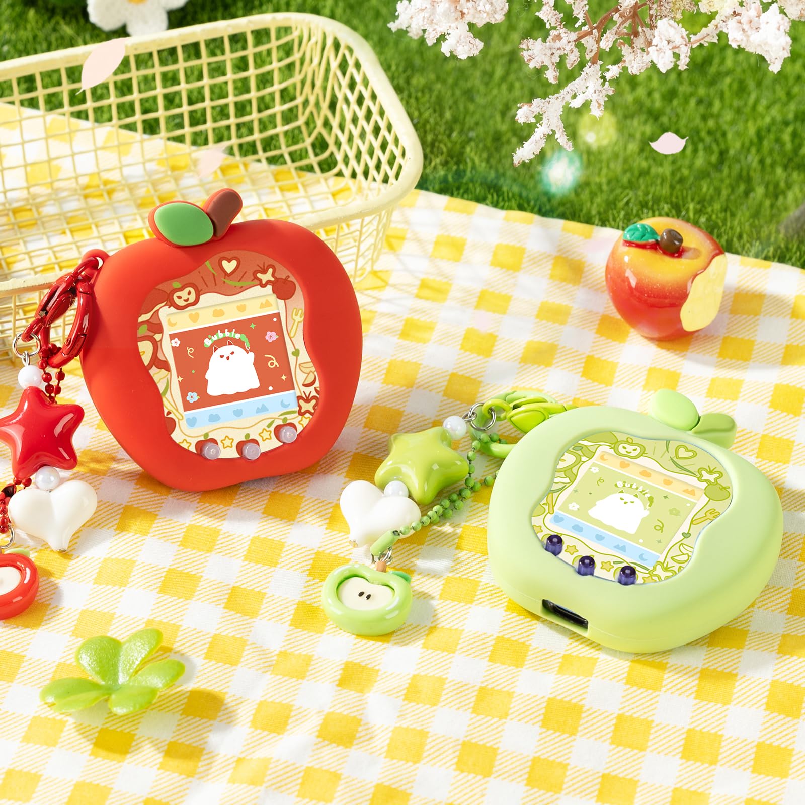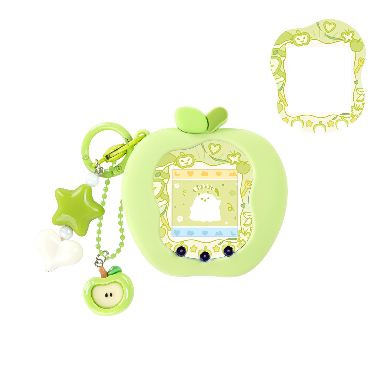 BUBBLELOGUS たまごっち uni カバー 柔らかい保護ケース チャーム&フェイスプレート付き シリコン製 かわいいスキン 落下防止 衝撃吸収 装着充電可能 Tamagotchi Uni 対応 りんごランド(みどり)