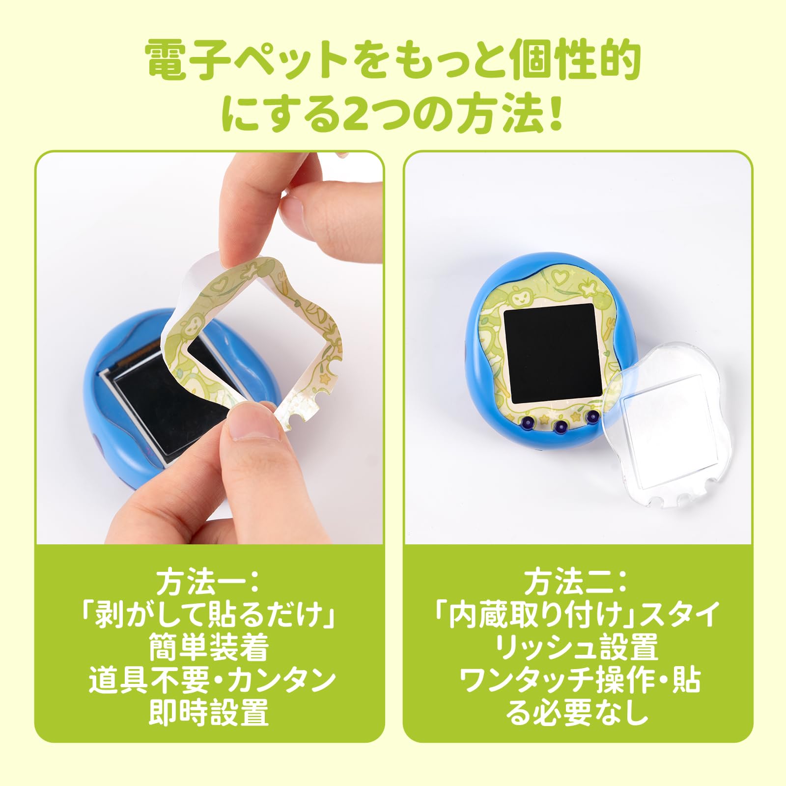 * 【2種類のスキン交換方法】:方法一:「剥がして貼るだけ」簡単装着、道具不要·カンタン即時設置。 方法二:「内蔵取り付け」スタイリッシュ設置、ワンタッチ操作・貼る必要なし。