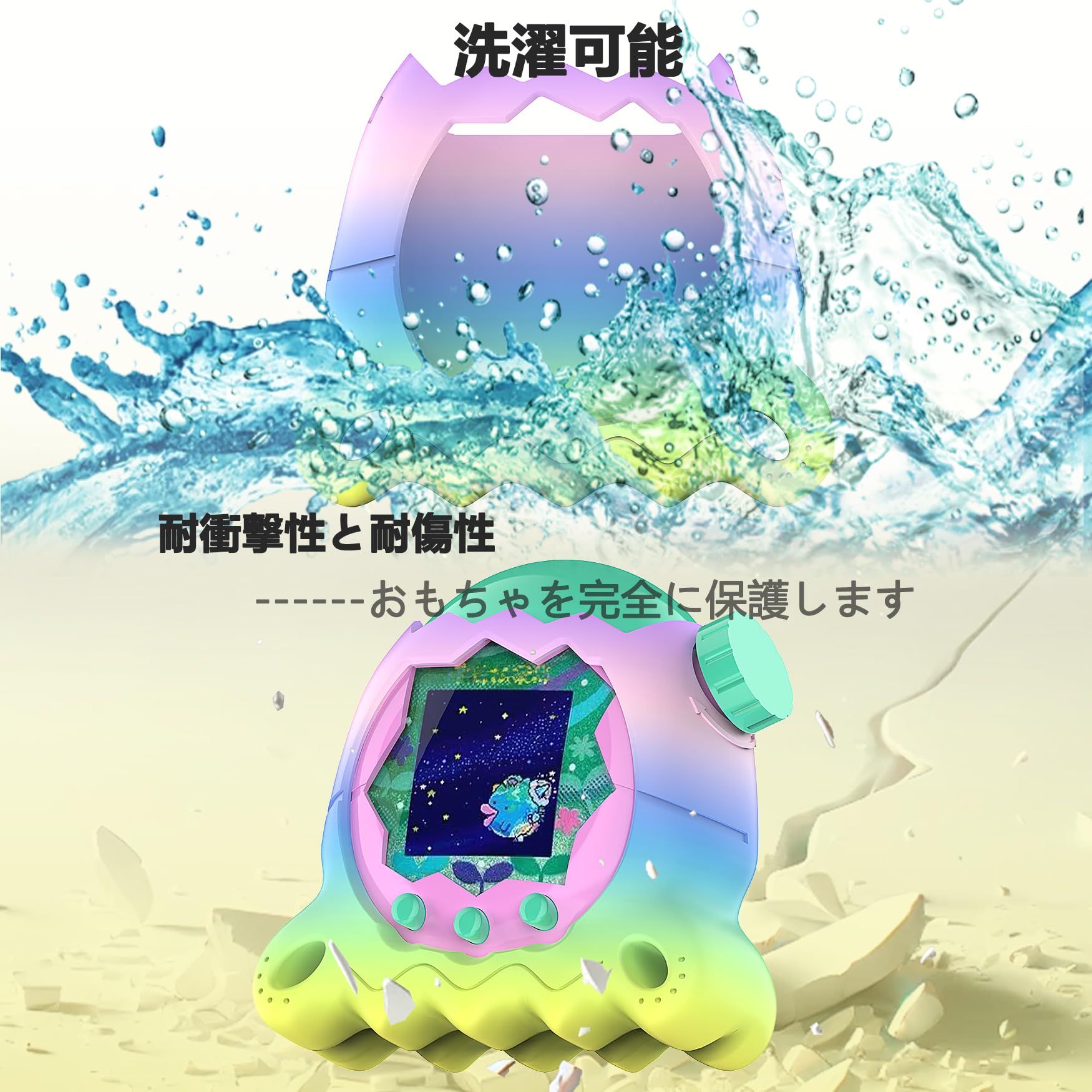 BCWXIONシリコン保護シェルはTamagotchi Paradise(エッグパーティー)に適している スクリーン保護フィルム、ストラップ付き、底は立つことができます、耐衝撃、防塵、全面保護ケース(虹色)