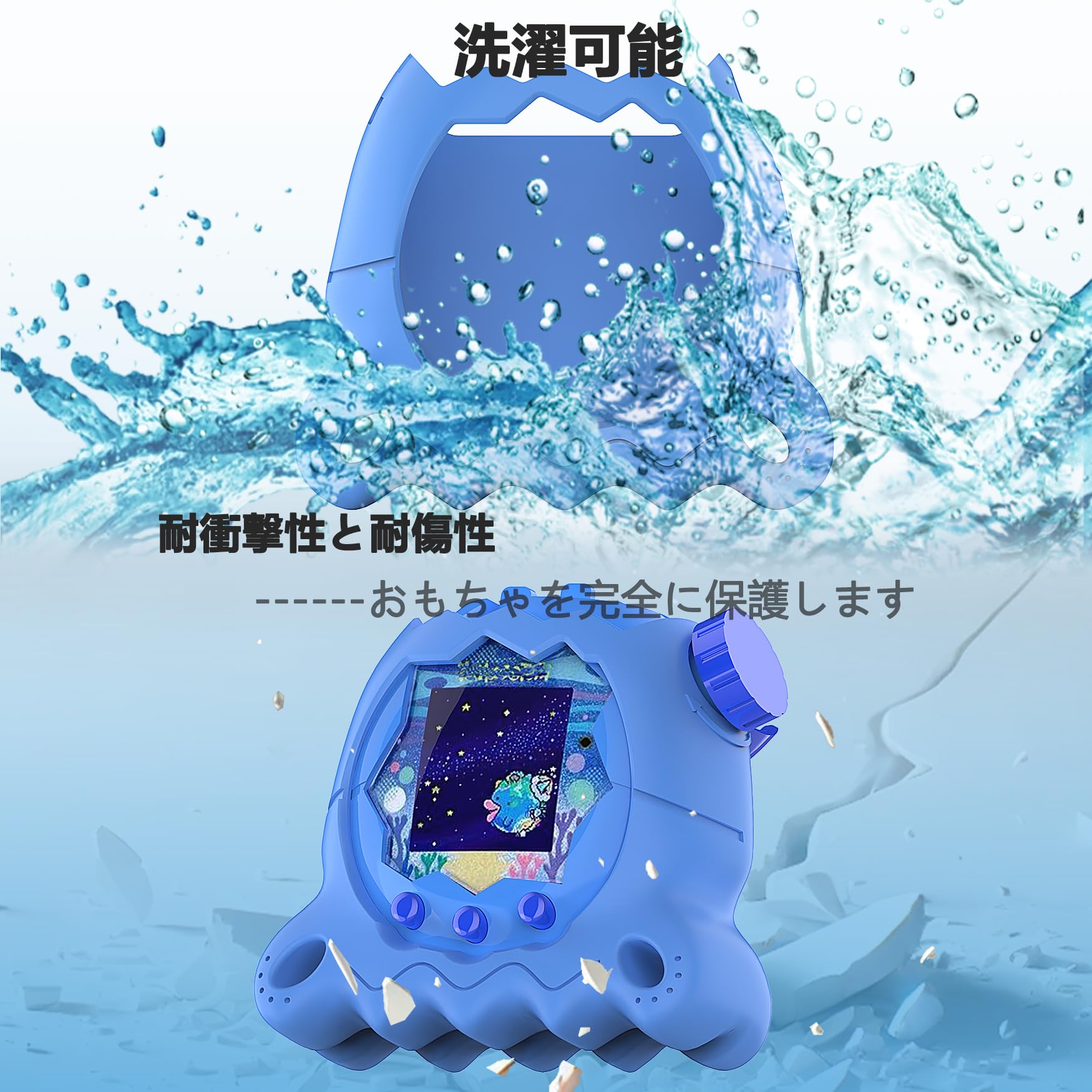 BCWXIONシリコンケースカバー For Tamagotchi Paradise(たまごっちパラダイス), 付属画面パネル保護フィルム 指掛けストラップ 指紋防止 落下防止 軽量 耐衝撃 防塵 全面保護カバ (青)