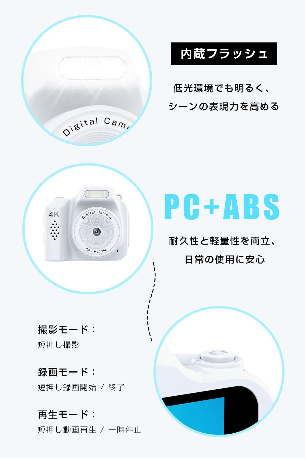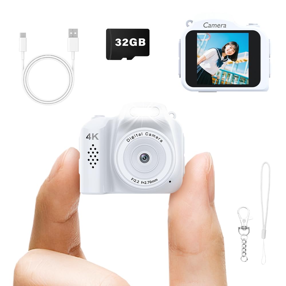 【2025業界超小サイズ】CHUDA デジタルカメラ 4K ミニカメラ キッズカメラ 6400万画素 OTG対応 1.54インチIPS画面 31g LEDライト 多種類フィルター 軽量 携帯便利 ウェブカメラ機能 キーホルダーセット USB充電式 32GBカード付属 修学旅行 子供/学生/初心者に向け ホワイト