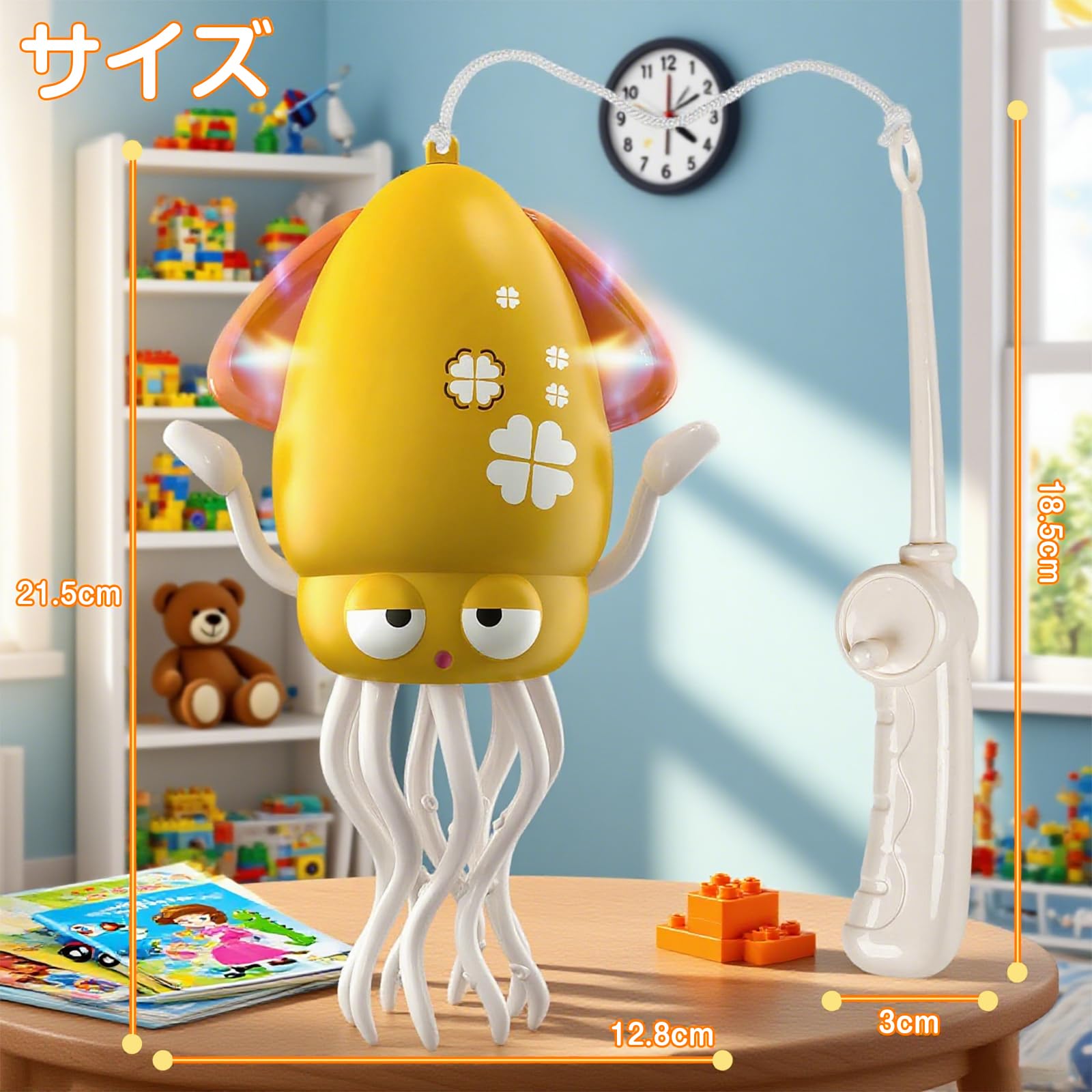 * 【 趣味の釣りゲーム】おもちゃと一緒に釣り竿を配送すると、子供は「釣り」の楽しみを体験でき、手を動かして脳を働かせ、手と目の調和能力を高め、遊び方は多様で退屈ではない!動的な運動と効果的な音楽を組み合わせて、たちの運動能力、協調性、感覚認識の発展を促進して、這うこと、歩くこと、活発に遊ぶことを促進して、楽しい教育的なゲームになります。踊る イカ おもちゃ 動くイカ イカ の おもちゃ 泳ぐ いか おもちゃ イカ おもちゃ 動 踊るおもちゃ ダンシング ダンシング おもちゃ。