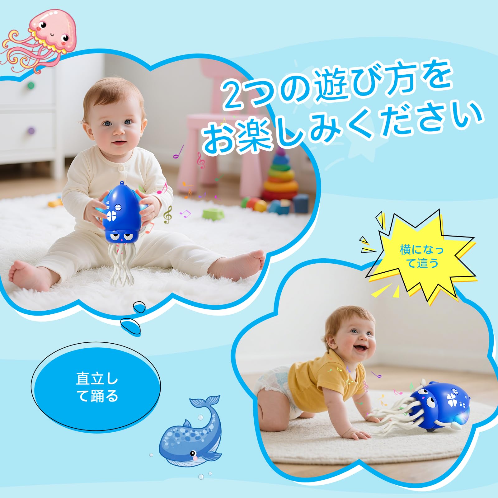 * 【好奇心旺盛なお子様へのプレゼントに】このインタラクティブなタコのおもちゃは、誕生日、休日、特別な機会に最適なギフトです。ダンスパーティーでも、感覚探求の場でも、お子様は生き生きとしたパフォーマンスと魅力的な機能にきっと夢中になるでしょう。釣り竿と組み合わせれば、さらに楽しくなります