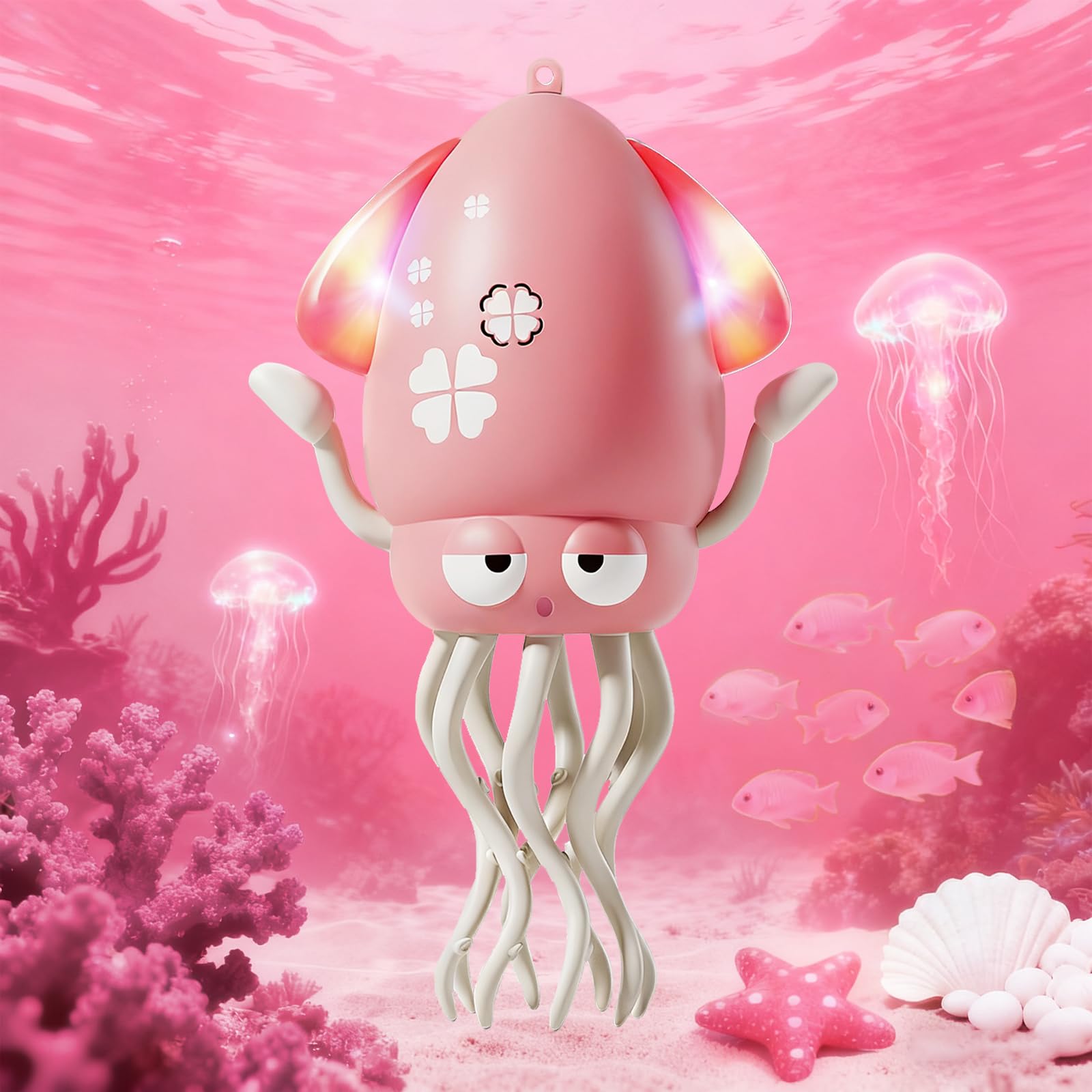* 【 ダンスができる電動イカのおもちゃ】かわいい造形をしたこの電動イカのおもちゃは、電源を入れると陽気な音楽に合わせて触角をひねり、変なダンスを踊っているような面白さがあります。LEDライトとの連動でエンタメ性抜群です