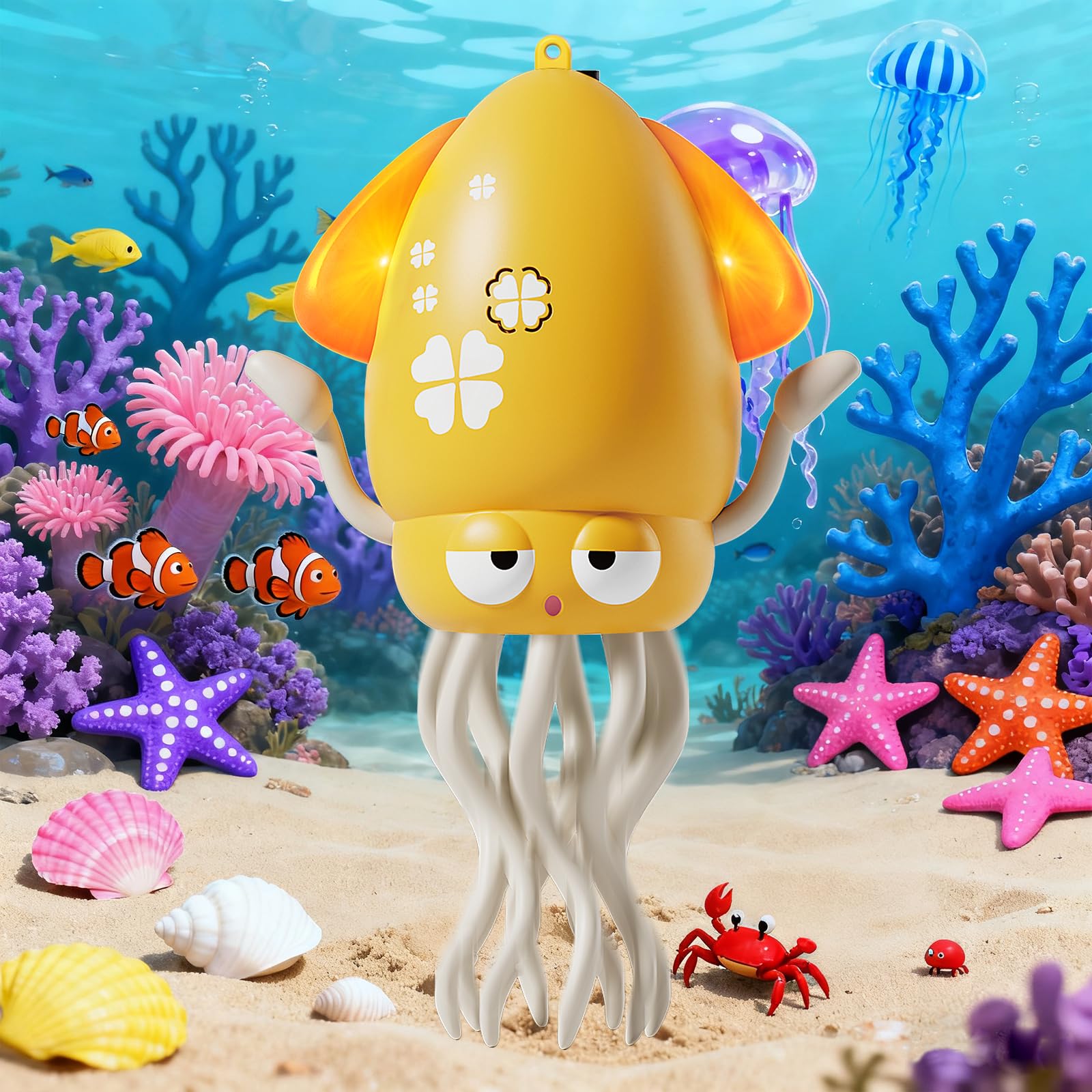 * 【 ダンスができる電動イカのおもちゃ】かわいい造形をしたこの電動イカのおもちゃは、電源を入れると陽気な音楽に合わせて触角をひねり、変なダンスを踊っているような面白さがあります。LEDライトとの連動でエンタメ性抜群です