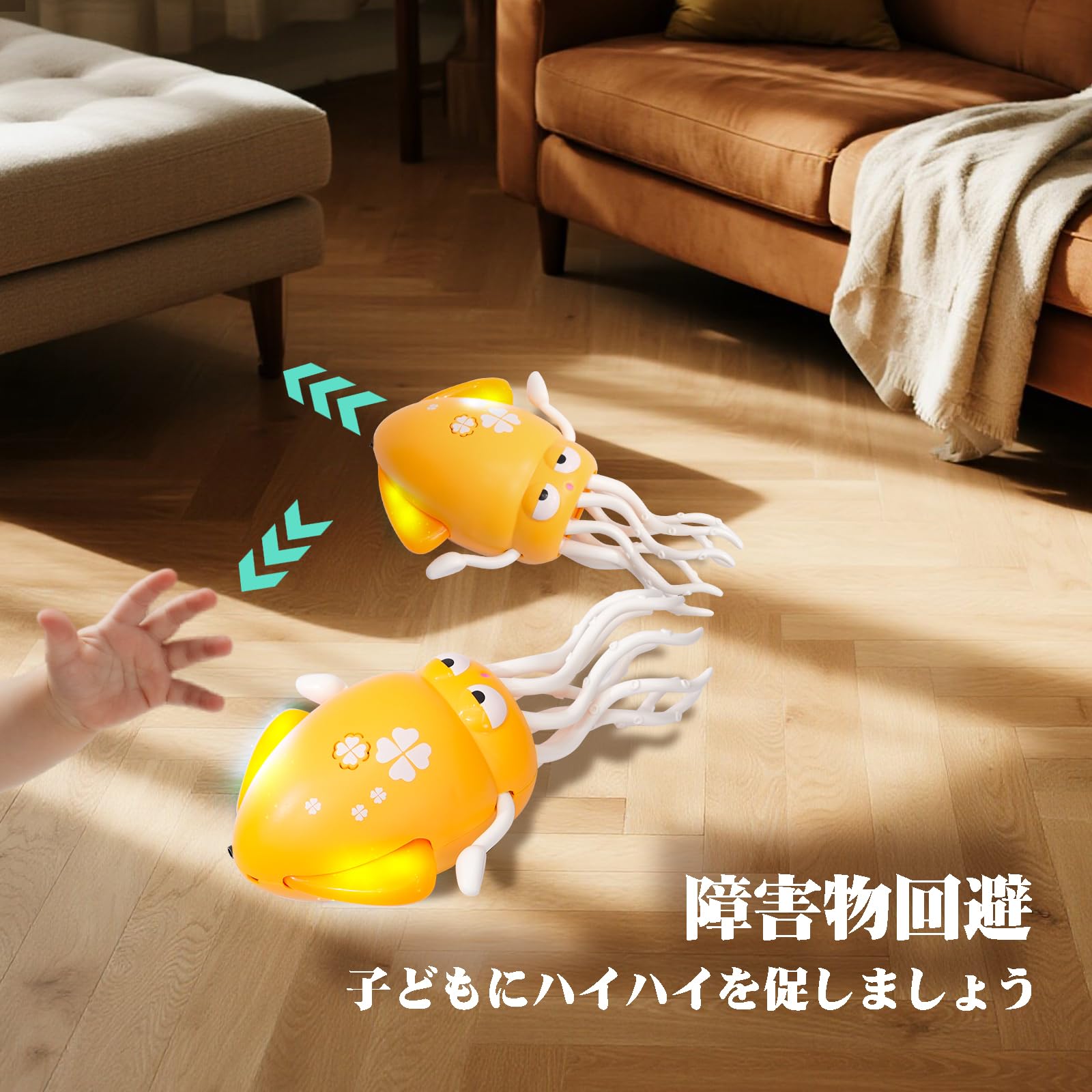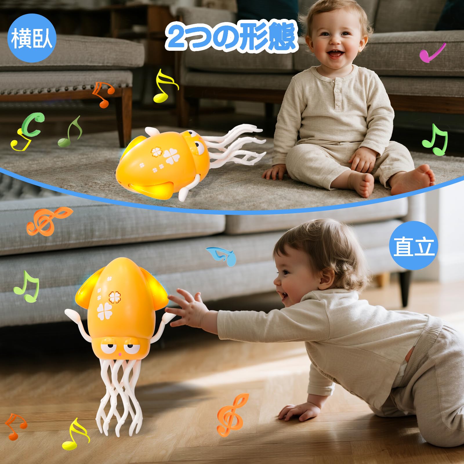 動くタコ型ロボットおもちゃ ダンシング イカ おもちゃ 動く 電動 踊るタコ 障害物自動回避 LEDライト&音楽付き 釣りごっこ遊び Type-C充電 知育玩具 クリスマス 誕生日 プレゼント ギフト (イエロー)