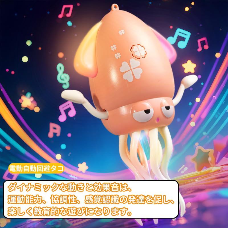 * 【2025話題になるインタラクティブ電動イカ】2025年最新電動タコのおもちゃがくねくねリズムに反応!かわいい形をして、電源を入れると陽気な音楽に合わせて、音に反応し、手を叩くと方向転換。動くイカおもちゃがSNSにはイカゲームと呼ばれて超大人気。8本足アクションとカラフルなLEDライトで、ダンス、ウィグル、スピンができます。床やカーペットを自在に移動。動きと光で、お子様のエンターテイメントや感覚遊びに最適。子供のおもちゃとして最適な設計で、楽しめるイカ おもちゃ 動くロボットです。