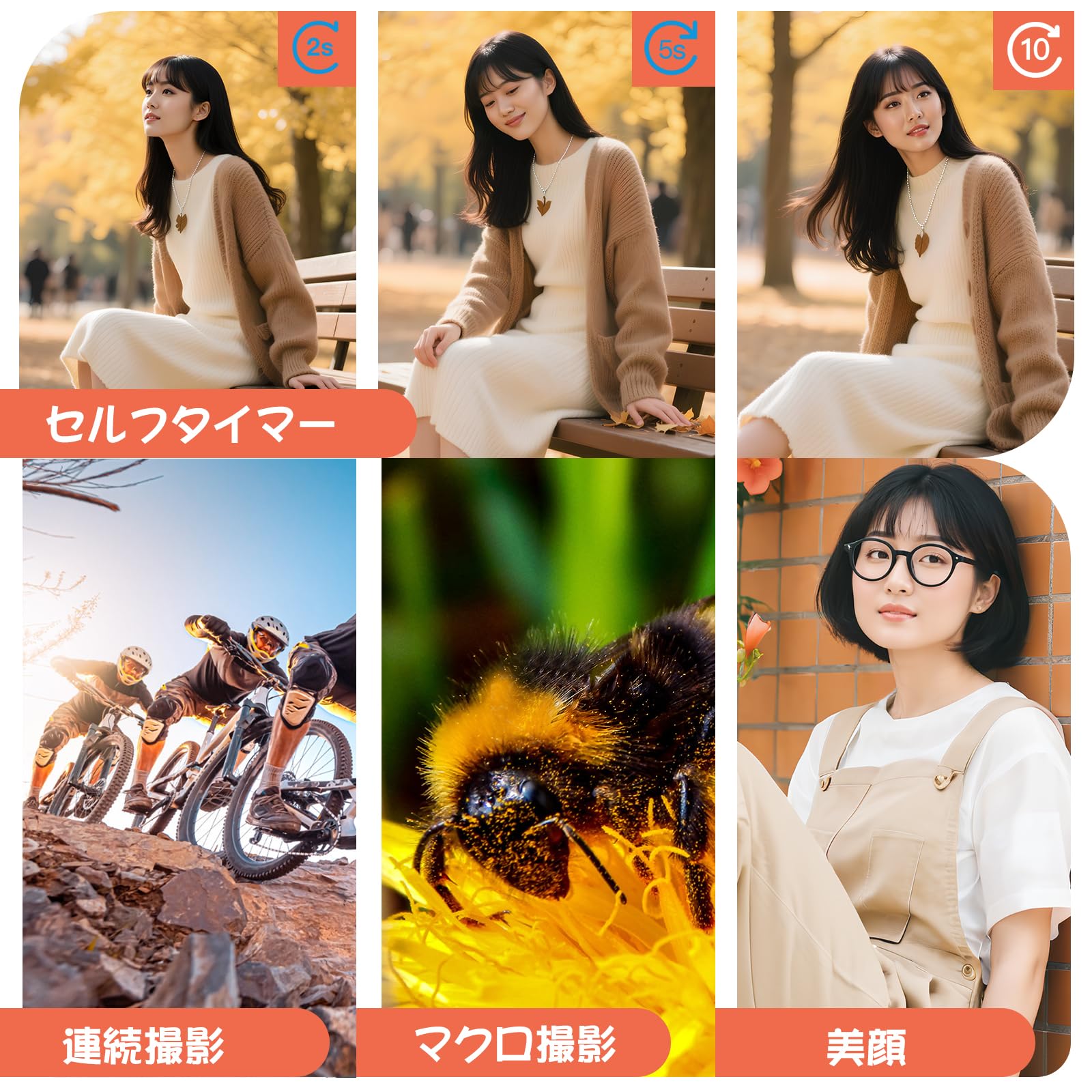 * 「多機能カメラ&Vlogカメラ」USBケーブルで簡単にコンピュータに接続でき、瞬時に高解像度ウェブカメラとしても即座に利用できます。 さらに、スマイル検出・美顔モード・連写撮影・セルフタイマー・スローモーション・マクロ撮影・ループ録画など、多彩なインテリジェント機能を完備しております。 操作が簡単なため、撮影初心者でも思い出の美しい瞬間を楽々記録できます。