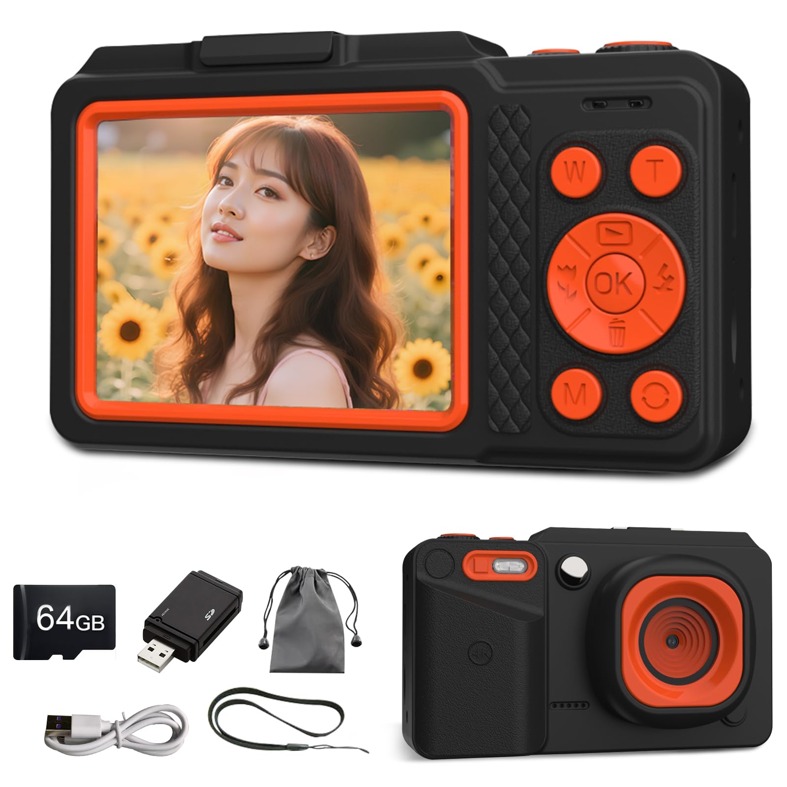 * 「7200万画素の超高解像度」本デジカメはSONY CMOSセンサーを採用。業界トップクラスの7200万画素で、繊細な質感と自然な色味を忠実に再現します。鮮やかな写真・動画を簡単に撮影いただけます。64GBの高速メモリーカード付属で、ストレージ容量を気にすることなく、美しい作品作りを存分にお楽しみいただけます。
