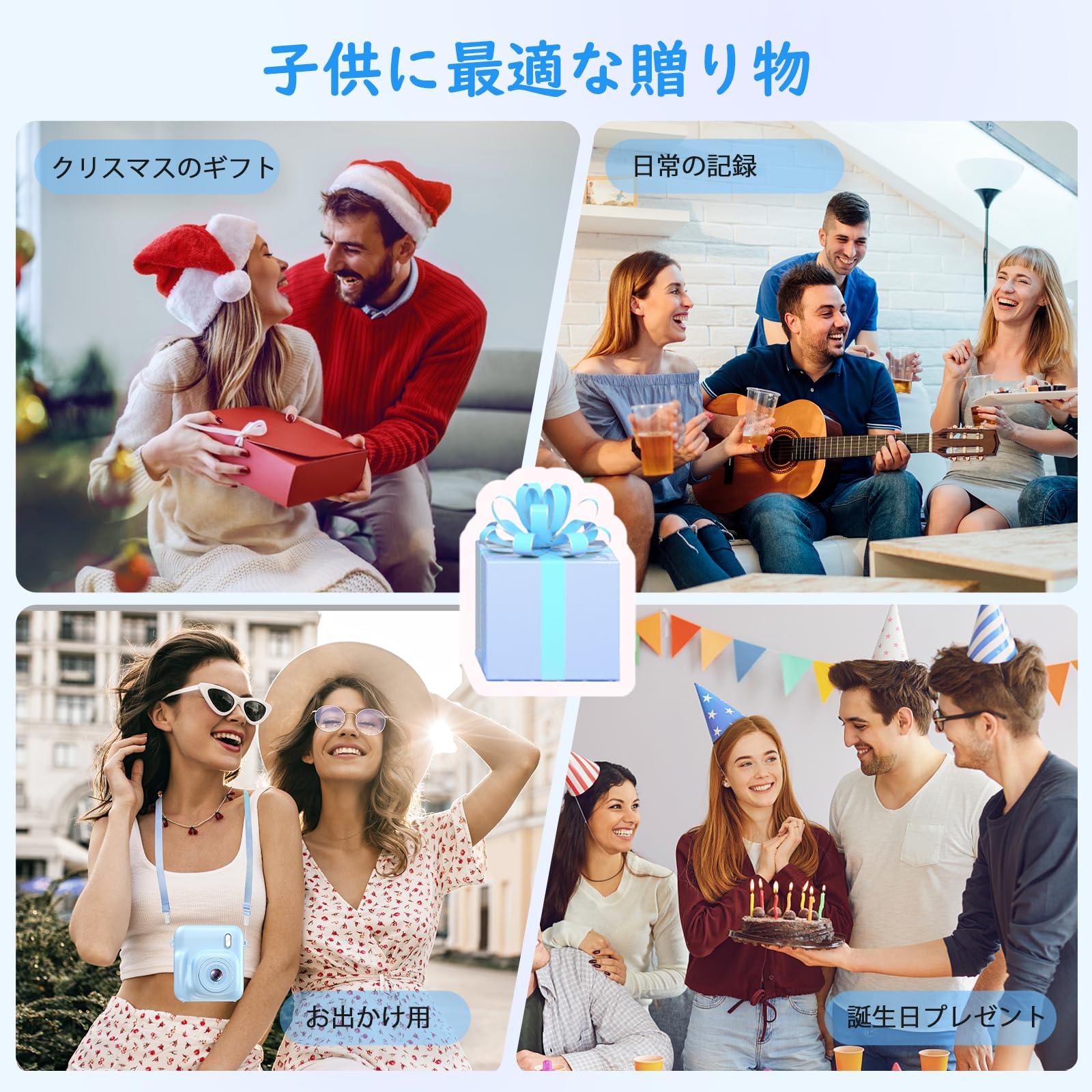 インスタントカメラ プリントカメラ キッズカメラ トイカメラ 感熱紙 カメラ 4800万画素 1080P動画USB充電 デュアルレンズ 自撮り 印刷機能付き 女の子 男の子 新年のプレゼント子供の日 誕生日 クリスマス 32GB メモリーカード 青