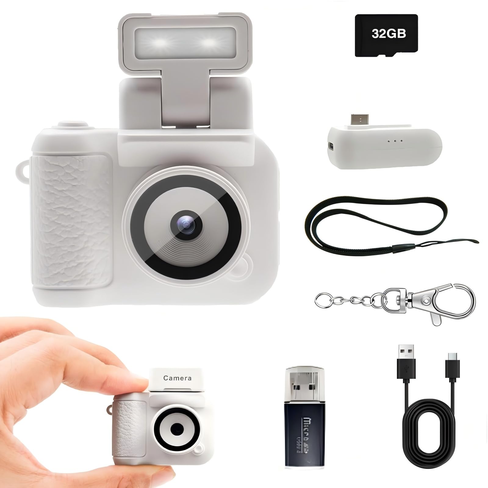 SRVR デジタルトイカメラ ミニカメラ ミニカメラ ミニデジタルカメラ 1080P 1.44インチ画面 充電ベース付き 25g重さニ 32GBカード付属 修学旅行 学生 初心者 TYPE-C充電式 日本語取扱説明書 (1, 煌白(こうはく))