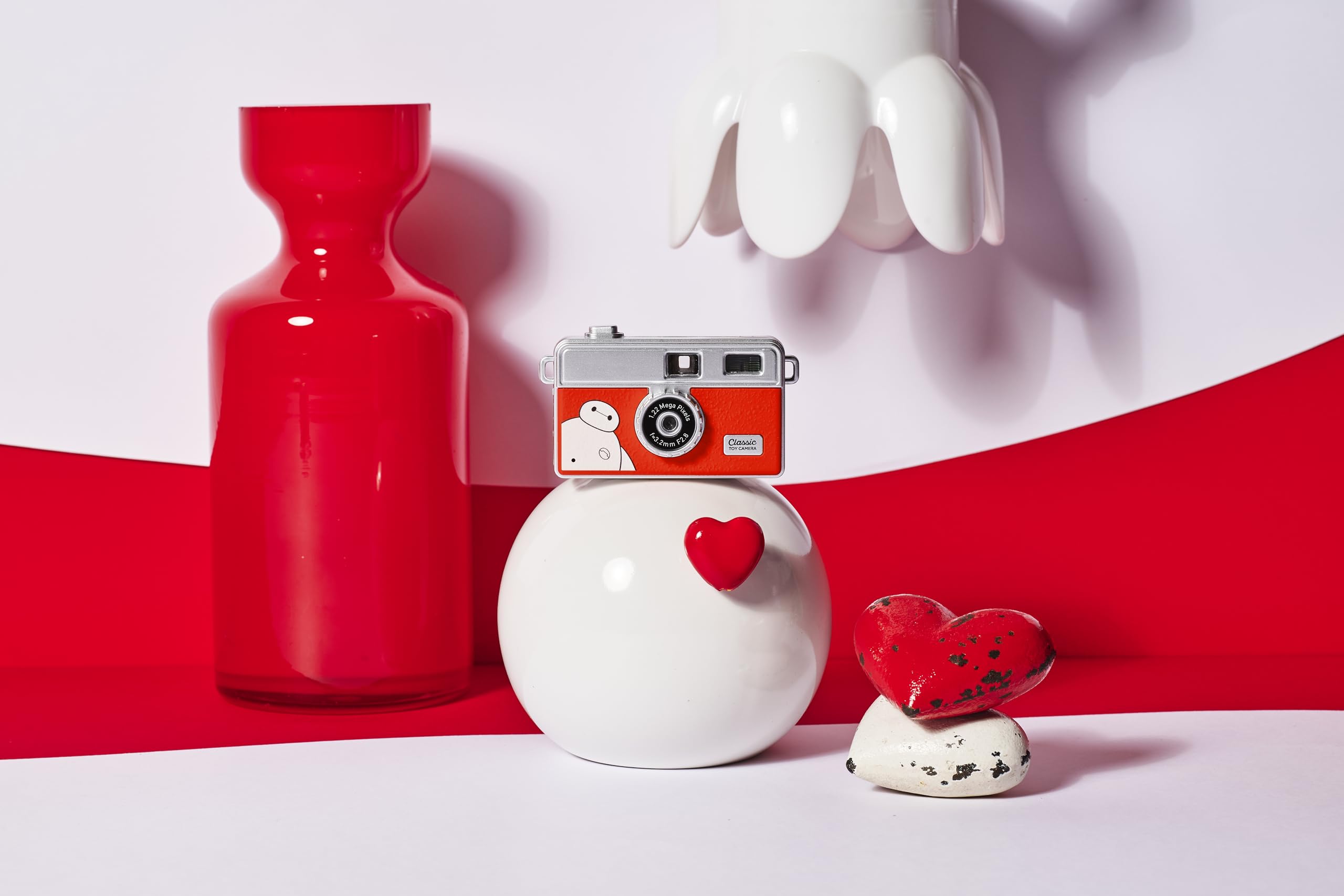 * 【製品仕様】■キャラクター:ベイマックス / ■撮像素子:1/9型 CMOS / ■総画素、有効画素数:122万画素 / ■焦点距離(35mm判換算):21.6mm / ■フォーカス形式:パンフォーカス(0.3m~無限遠) / ■液晶モニター:0.96型TFT液晶 / ■保存形式:microSDHC(別売、~32GB) / ■静止画サイズ:1280×960pix / ■動画サイズ:1280×720,30p / ■入出力ポート:USB Type-C / ■シャッタースピード:1/100秒(固定) / ■ISO感度:100(固定) / ■本体サイズ:約63×36×19mm / ■重さ:23g(本体のみ)