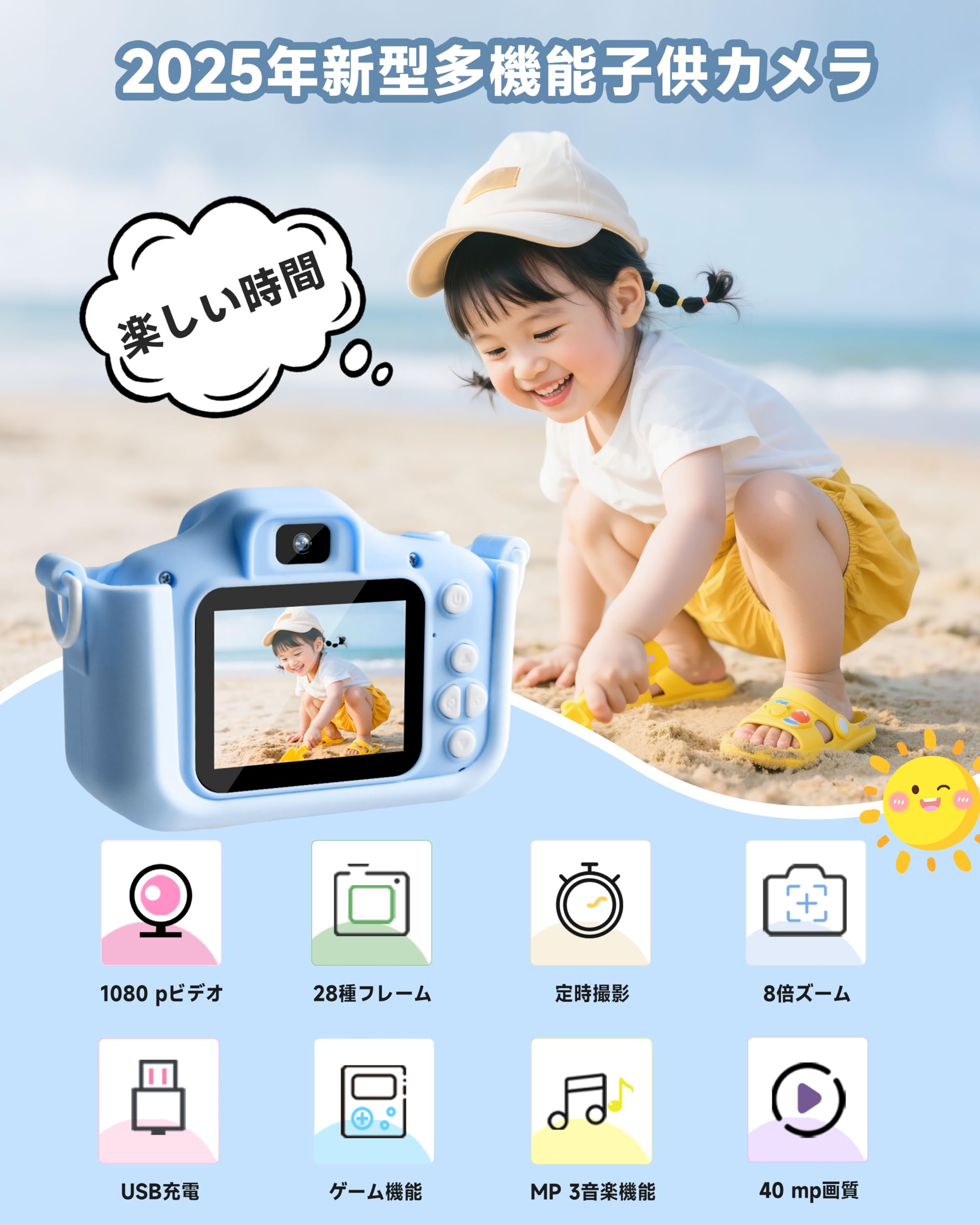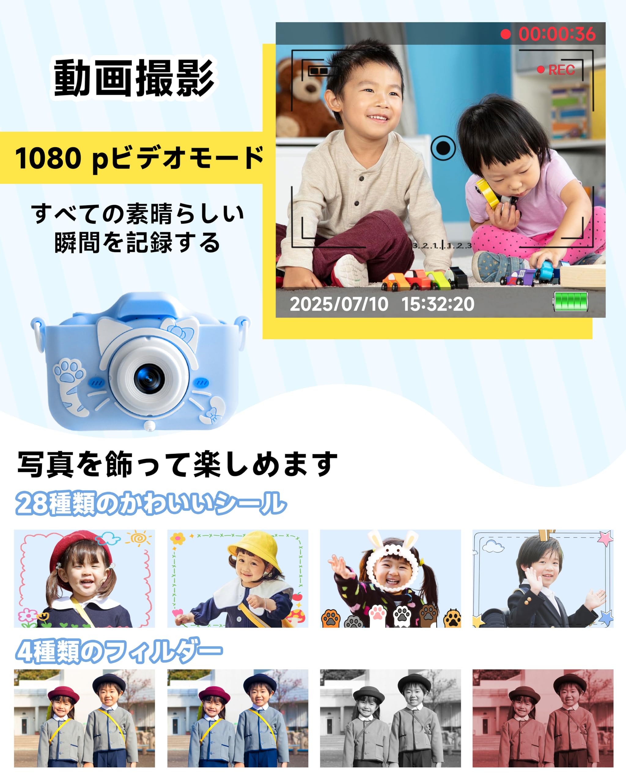 * 【2025年新デザイン!&かわいい子供用カメラ】 こちらは2025年最新モデルの子供用カメラで、特にお子様向けに設計されています。コンパクトでカラフルな外観が特徴で、クリスマスや誕生日のプレゼントに最適です。カメラの外装はとても可愛らしく、男の子にも女の子にもぴったりで、撮影の楽しさを存分に味わえます。お子様専用のカメラとして、成長の瞬間を簡単に記録できるアイテムです。