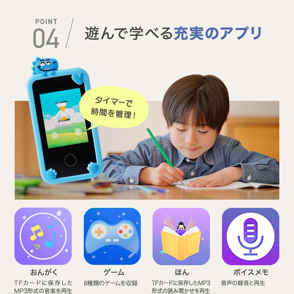 * 【知育ゲーム搭載】スマホで遊びながら楽しく反応力・想像力を育てます。通常のスマホと違い、課金要素がなく安心安全。