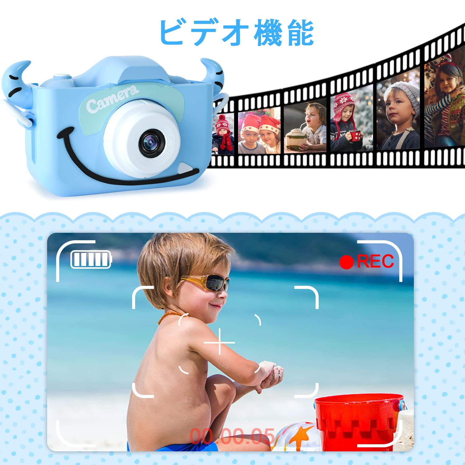 CIMELR 子供用カメラ /32GBメモリーカード付き/2.0インチIPS 画面/4倍ズーム/USB充電/デュアルレンズ/シリコン保護ケース/子供向け録音自撮りカメラデジタルカメラ4歳 5歳 6歳 7歳 8歳 男の子女の子子供の日 誕生日プレゼント日本語説明書付き(ブルー)