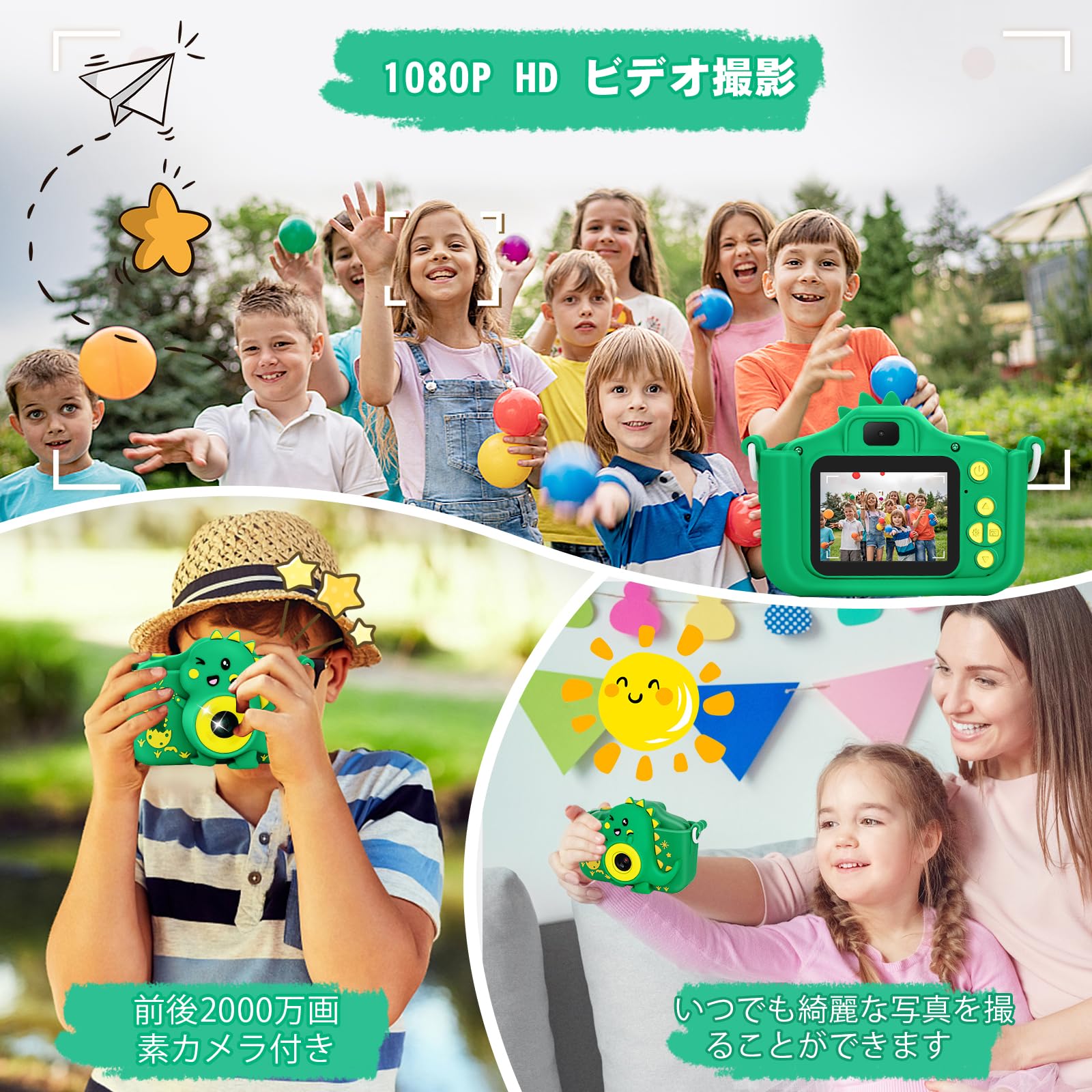 * 【プレゼントに最適&1年品質保証】こどもかめらは安全基準を満たし、子供の健康に配慮した環境に優しい材料で、非毒性、耐衝撃性、耐久性のある材料を使用しています。子供の手によりデザインし、落ちにくいです。子供の誕生日、旅行、入学、クリスマス、新年、パーティー、お花見、ハイキング、運動会など色々な場合に最適のプレゼントとしてオススメです。本子供カメラの保証期間は1年です。使用する時に、何かご不明な点がございましたら、いつでもお気軽にお問い合わせください。