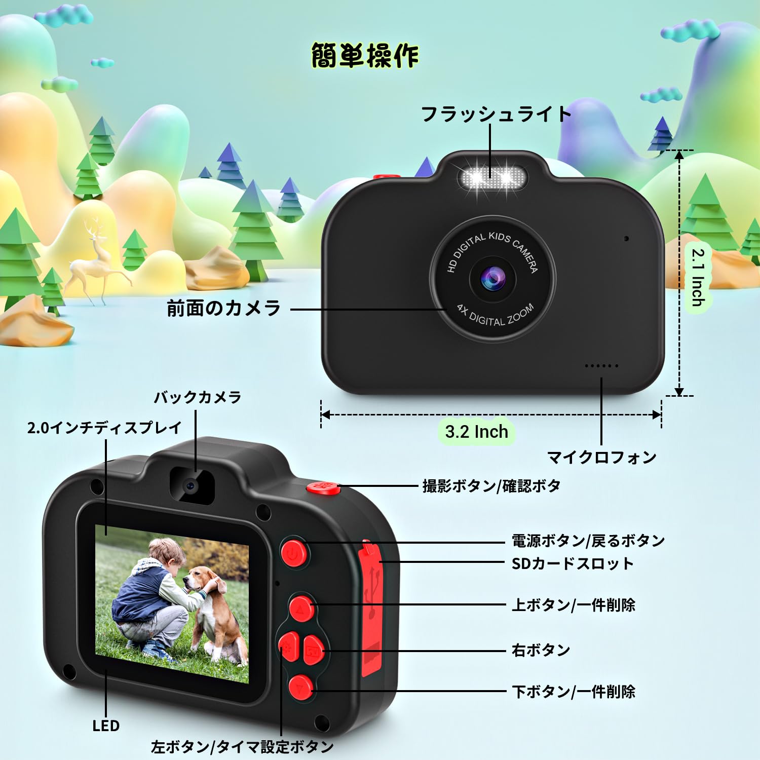 * 【SDカード付きのキッズカメラ】初めから32Gのカードが付属するので届いたらすぐに遊べます! キッズカメラ、typeC USB充電ケーブル、32GBメモリーカード、キャリングストラップ、ユーザーマニュアル(英語と日本語のマニュアルダウンロード可能)が含まれ。1年間の保証が付いており、品質に関する問題がある場合、1年以内であれば無料で修理または交換いたします。