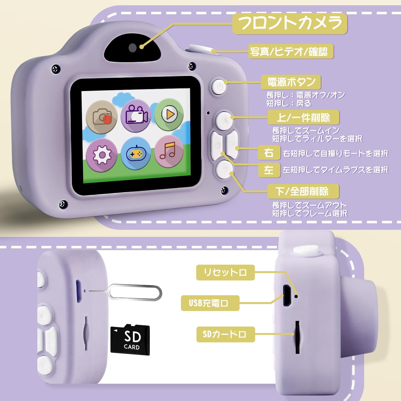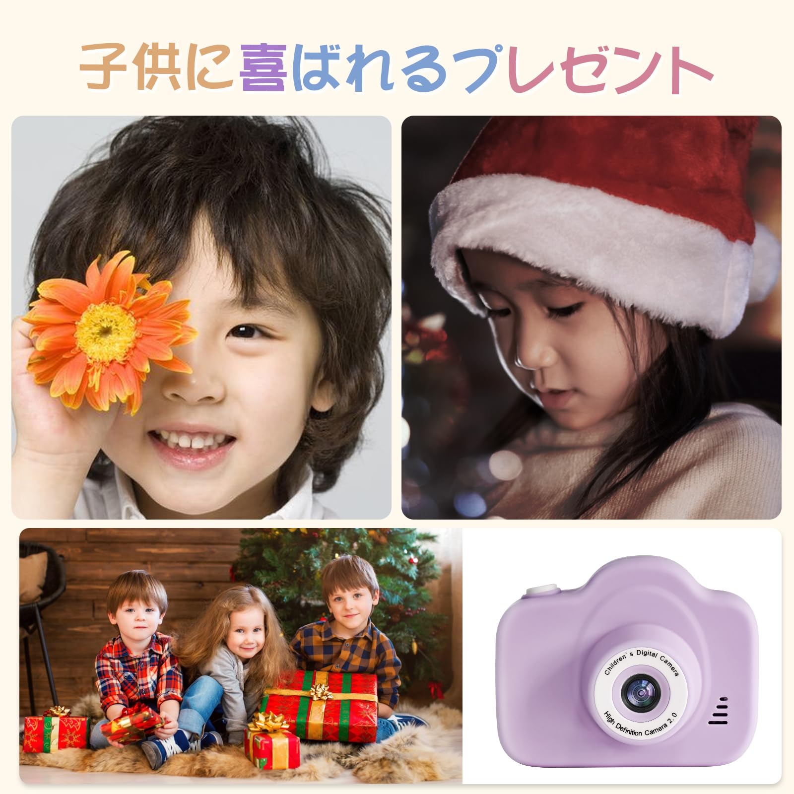 Yireal キッズカメラ 子供用 トイカメラ 子供用デジカメ ひらがな操作パネル 目に優しい設計 自撮りカメラ キッズデジカメ子供の日プレゼント 2000万画素 1080P HD 動画カメラ 2インチ 画面 USB充電式 男の子 女の子 おもちゃカメ 32GB SDカード付き 人気 ギフト 誕生日 プレゼントギフト 贈り物 日本語取扱説明書付き(薄紫)