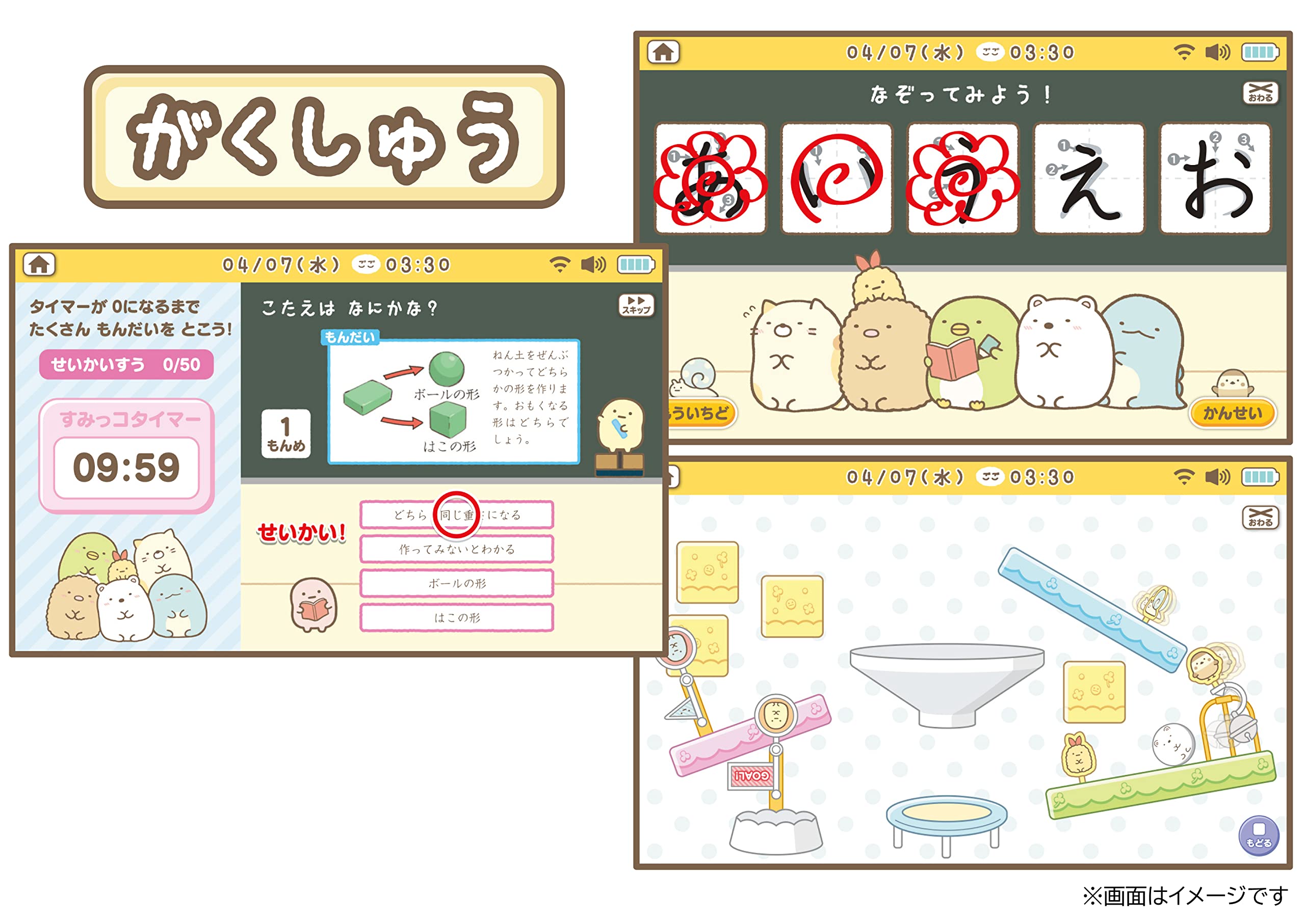 * 画面の周りにはすみっコぐらしの可愛いデザインがプリントされています。