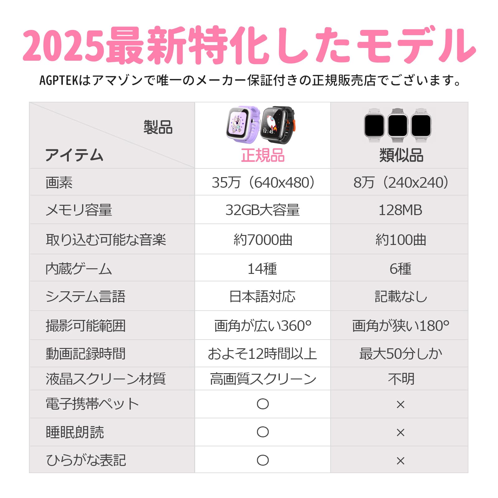 「2025年末特化」 AGPTEK 日本正規品 キッズ 腕時計 子供用 スマートウォッチ 【32GB内蔵 1.69インチ】 時計 女の子 知育玩具 スピーカー付き キッズモード アラーム 文字盤DIY 歩数計 動画 撮影 自撮り 録音 ゲーム 音楽 おもちゃ 小学生 5歳 6歳 7歳 8歳 9歳 誕生日 入園入学祝い 誕生日 クリスマス プレゼント ギフト 人気