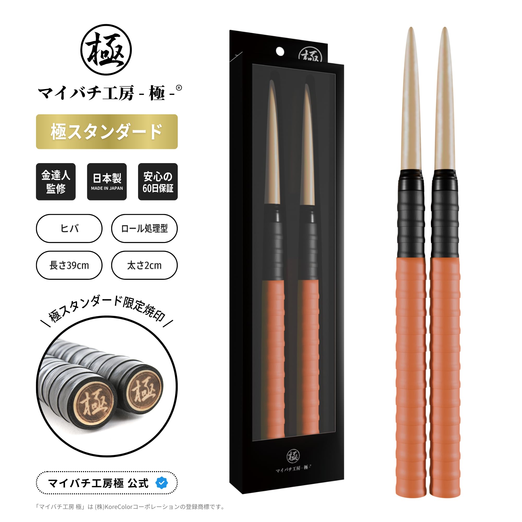 【マイバチ工房 極】極スタンダード 金達人監修 ヒバ ロール処理型 マイバチ 2ヶ月保証付き 光沢あり (ORANGE)