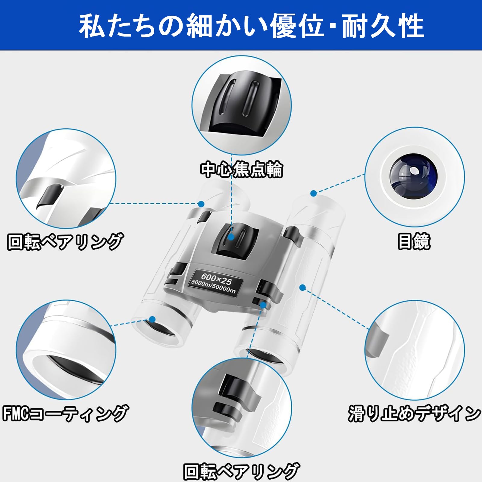 双眼鏡 ライブ用 高倍率 オペラグラス [2025業界先端・高透過率・防振設計] 観劇 スポーツ観戦用 コンサート 双眼鏡 小型 超軽量 25mm口径 目幅調整 手ぶれ補正 BAK4プリズム FMCマルチコート お子様や女性に最適 スポーツ観戦/旅行/登山/観光/アウトドア/野鳥観察 ネックストラップ 収納ケース付き 日本語説明書(ホワイトb)
