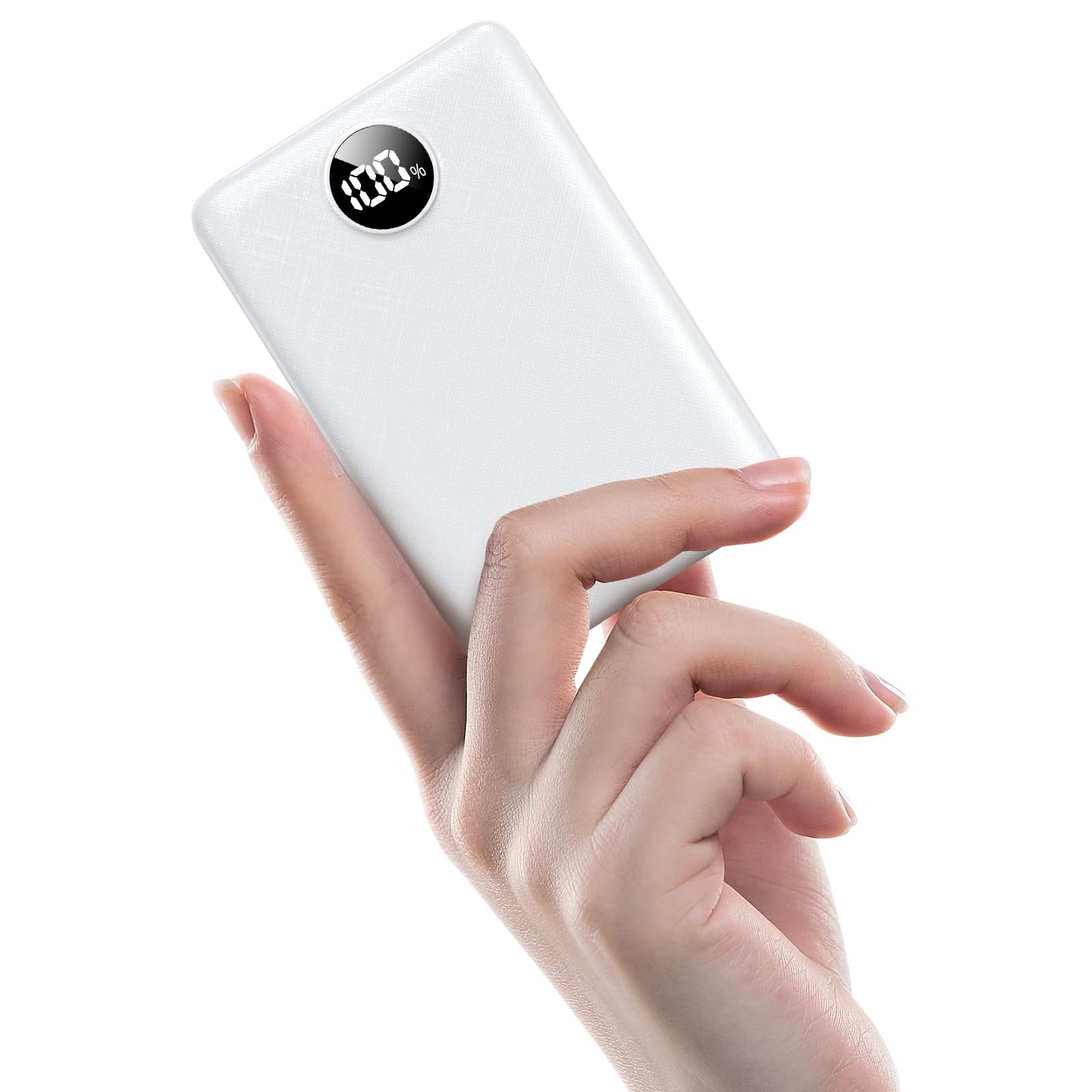 * 【軽量化と美観化の一体設計·持ち運び簡単】本体にLED液晶ディスプレイを搭載しており、残量を1%刻みで表示できるので、ボタンを押すと電池残量が一目で確認できます。充電のタイミングを把握するのに便利で、使うときにバッテリーの残量が無いといった不安を解消します。シンプルで男女問わず、誰でも使いやすいデザイン。実用性にも優れているので、友人や家族へのプレゼントにも喜ばれるでしょう。又は、厚さわずか1.6cm、縦10.6cm×幅9.6cmの超薄型、スマホと重ねて持っても負担にならないほどコンパクトで、サコッシュやハンドバッグなど小さなカバンにも仕舞いやすいサイズです。重量も約170gと軽量なので、持ち運びの際に負担を感じることはほとんどないでしょう。豊富な機能に加え、本体表面には傷がつきにくい「テクスチャ加工」が施されており、携帯電話と一緒に使用しても滑りや損傷からデバイスを保護できます。持ち運びやすく機能性も豊富で、スマホ用はもちろんイヤホンのモバイルバッテリーがほしい人にもおすすめの製品です。