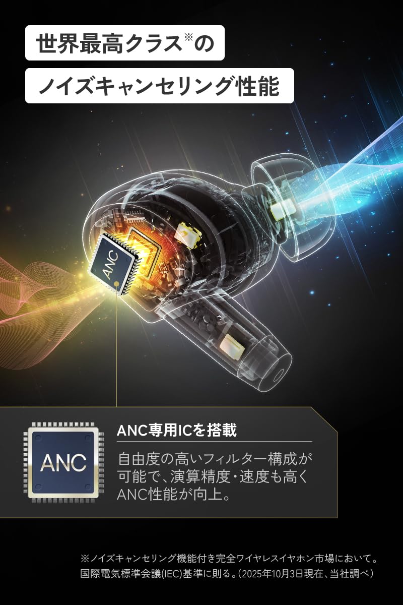 * 【耳に合わせた個別最適化】 パーソナライズサウンドが外耳道特性を測定し、定位・解像感を高める補正を自動で適用。EQ以上の精度で“あなたの音”に。