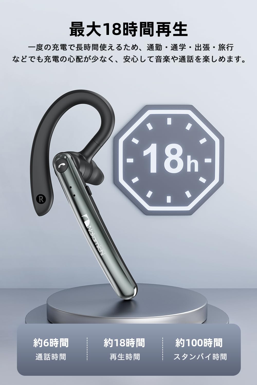 Nakamichi 片耳ヘッドセット Bluetooth5.3 耳掛け式イヤホン ENCノイズリダクション 左右耳兼用 ハンズフリー通話 ワイヤレスイヤホン ミュート機能 調節可能なイヤーフック マルチポイント N2