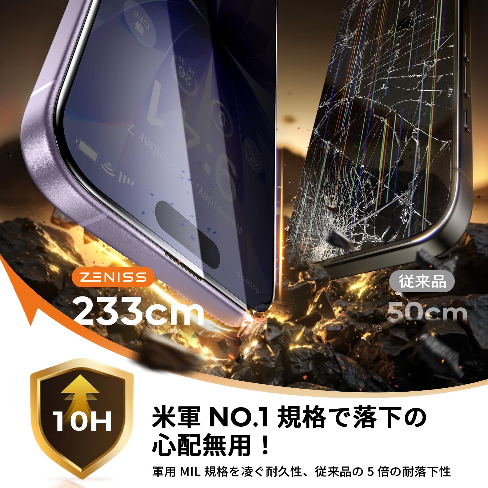 * 【業界トップクラスの保護性能!AGC 高硬度10H強化ガラス】Zeniss研究チーム30年の研究開発と継承された革新技術により生み出された弊社のいphone17 保護フィルム 覗き見防止は、米軍規格の航空宇宙グレードの高アルミシリコンガラス素材を使用し、最新のNa+/K+イオン交換技術により、ガラス内部に圧縮緩衝層を形成しています1200℃で10時間の高温硬化を繰り返し強化、10H硬度レベルを実現硬度と耐衝撃性が市販のあいほん17 ガラスフィルムより20倍も高いです。耐衝撃性(233cm耐落下)は市販iphone 17フィルム(50cm耐落下)の4倍。衝撃や傷からスマホを最大限に守ります鍵やコインなどの鋭利な物と一緒にバッグに入れても傷がつきませんさらに、いphone17 保護フィルムは破片飛散防止加工が施されており、使用者の安全を確保。全世界で1億600万枚以上を販売し、スマホ画面の破損ゼロという驚異的な実績を誇ります。