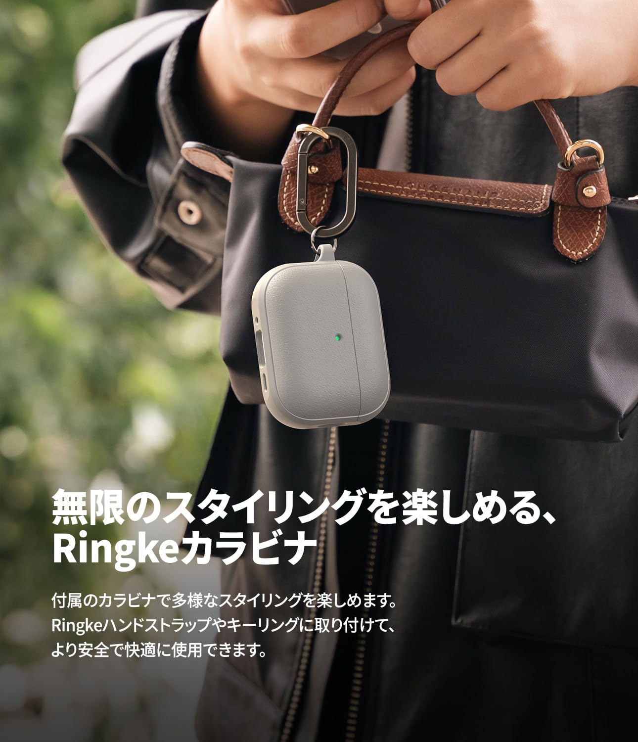【Ringke】AirPods Pro 3 用 ケース TPU+マグネット 第3世代 カラビナ付き ロック MagSafe対応 ワイヤレス充電対応 傷防止 滑り止め 指紋防止 耐衝撃 テクスチャ付き 保護カバー エアーポッズプロ3専用(ウォームグレー)