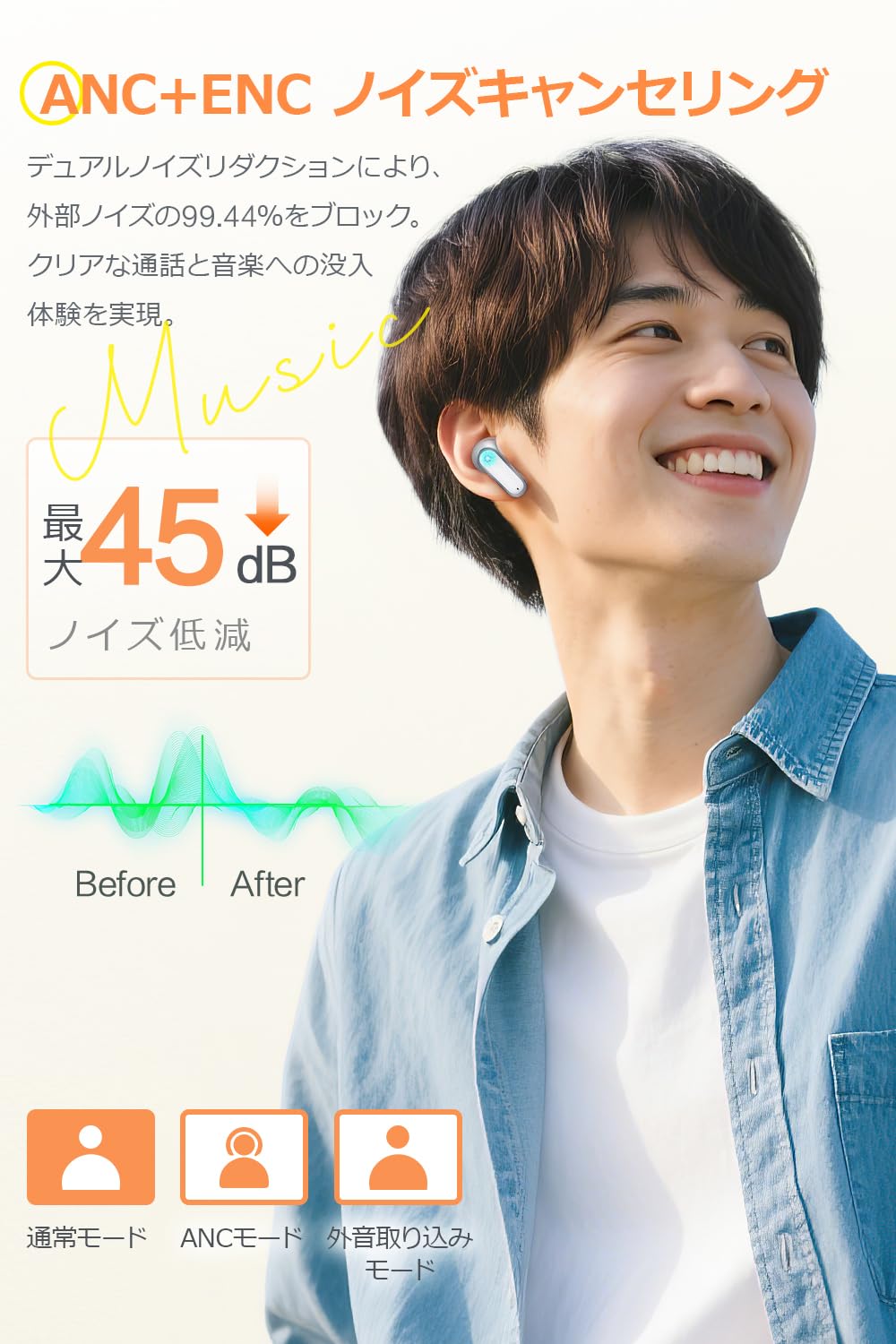 * 【ANC+ENC対応・騒音を気にせず通話も音楽もクリアに】周囲の騒音が気になる場所でも安心。高性能マイクを内蔵した本ワイヤレスイヤホンは、ANC(アクティブノイズキャンセリング)とENC(通話用ノイズキャンセリング)の2つの技術を同時に搭載し、周囲の雑音を大幅にカットします。地下鉄や繁華街、賑やかなオフィス内でも、通話相手にはあなたの声だけがクリアに届き、音楽はノイズに邪魔されず本来の音を忠実に再生。会議中のやり取りや重要な電話、またはリラックスタイムの音楽鑑賞まで、あらゆる場面で最高のパフォーマンスを発揮します。音質重視の方や静かなリスニング環境を求める方に最適な、小型ながら高性能なブルートゥースイヤホンです。