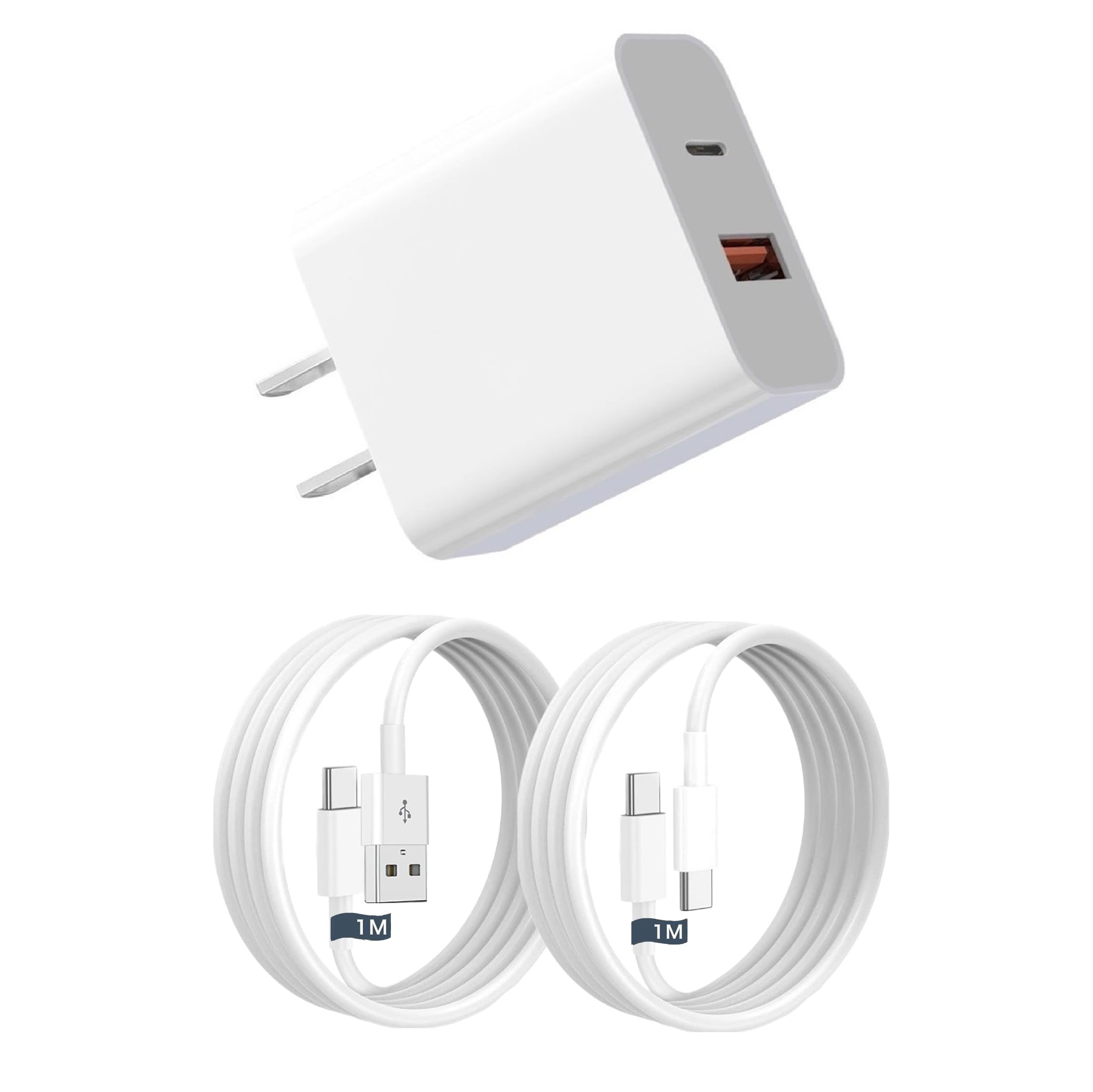 iPhone タイプc 充電器 USB Type-C 充電器 PD20W急速充電対応 USB-A & Type-C コンセント式電源アダプター 2ポート搭載 iPhone 17air/pro max/16/15/14/13/SE3 iPad、Android/タブレット各種対応/AC データケーブルと USB Type-C 急速充電ケーブルを各 1 本付属しています(01white20W1m1m)