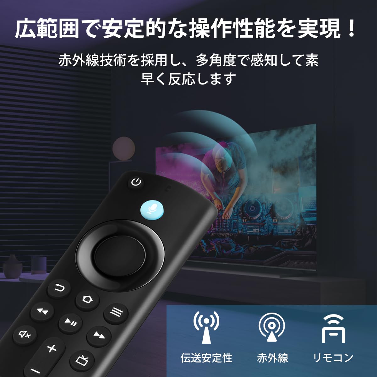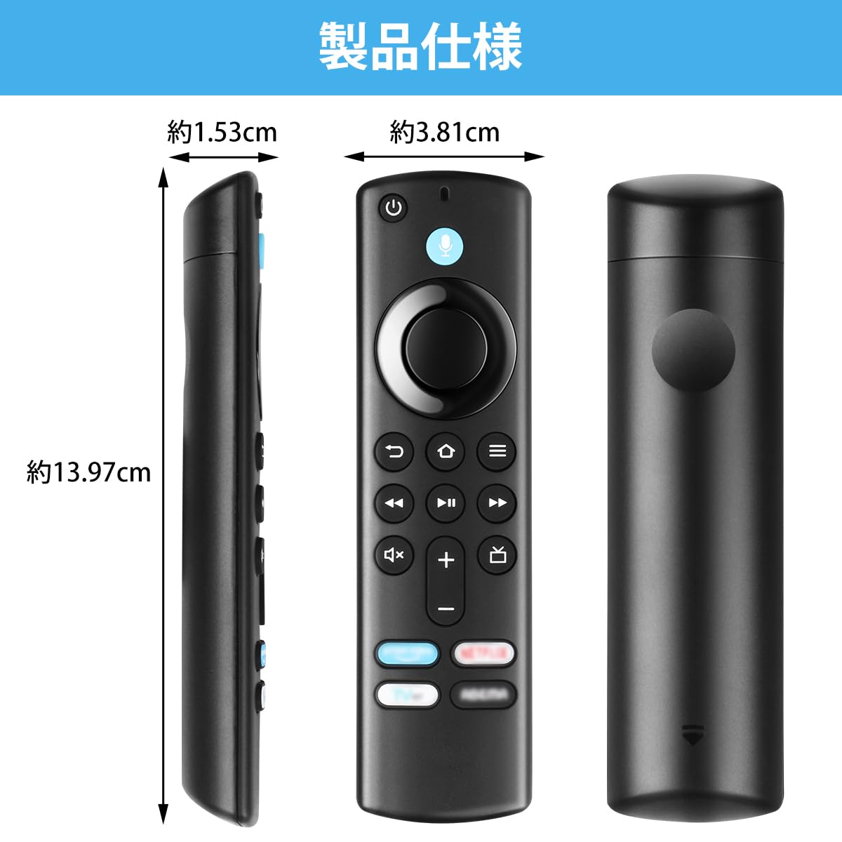 リモコン交換用 スマートテレビ対応 音声リモコン 音声認識機能付き プリセットAPPボタン搭載 ファイヤースティック TV 第1/2/3世代 4K Max/Lite/4K TV-Cube 汎用 リモコンのみ 日本語説明書付き 電池別売 PSE(日本電波認定証明書)認証済