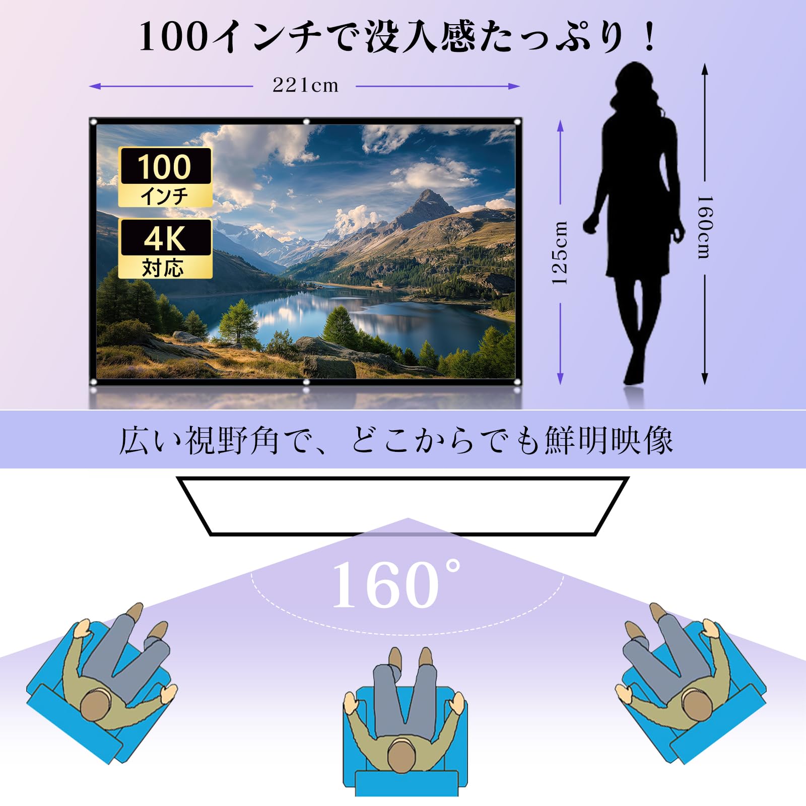 * 【約2.5倍の厚みで透けない!前後投影OK】市販の薄型スクリーンと比べて約2.5倍の厚みを持ち、裏写りしにくい設計。フロント投影だけでなく、リア投影にも対応しており、部屋のレイアウトや空間に合わせて自由に設置可能。より臨場感のある視聴体験を提供します。Salangeならではの高品質素材が実現しました。