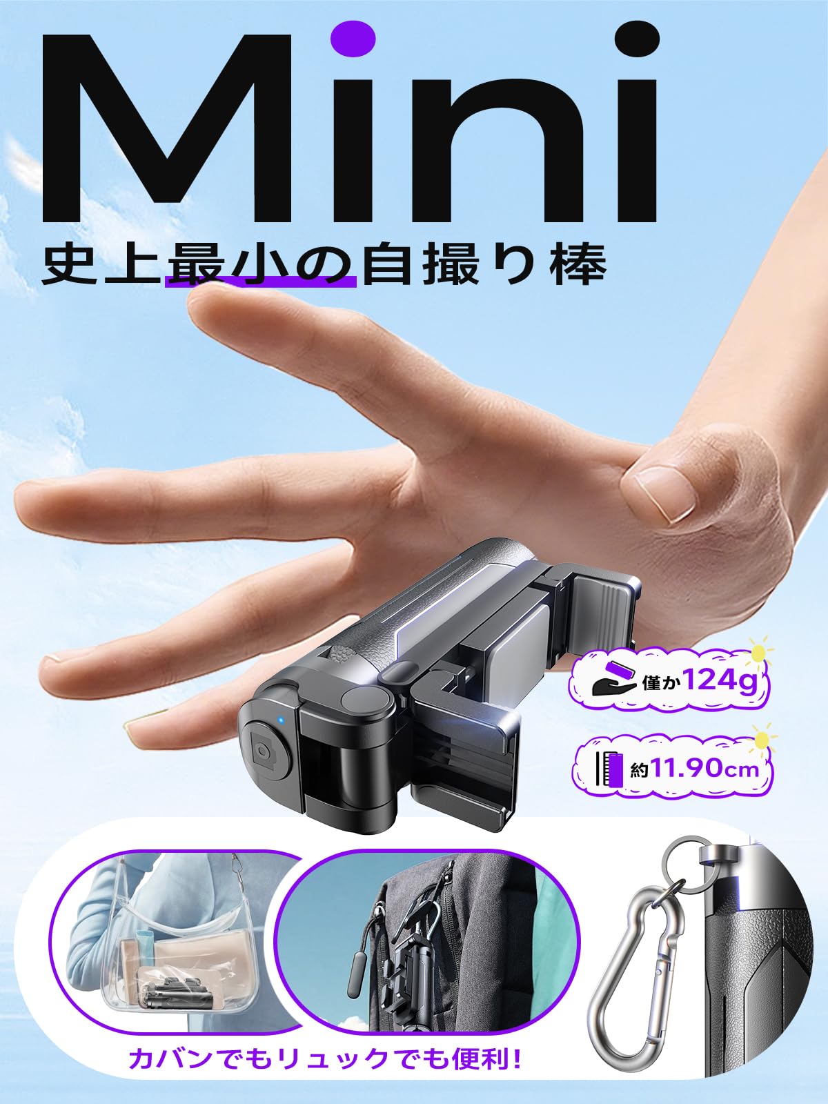 * 【SNS話題沸騰:MACOO幻の万能自撮り棒】スマホより小い11.9cm/124gの超コンパクト 自撮り棒が、ジーンズのポケットにもすっぽり収納!7段伸縮構造で、最長48cmまで伸ばせるため、セルフィーはもちろん、集合写真や背景を広く入れた撮影にも最適。自撮り棒・三脚・グリップ・卓上スタンドの4役をこなす多機能性で、日常の動画視聴から旅先の記念撮影、アウトドアやライブ配信まで幅広く活躍。これ1本で全てが完結するとブロガーやインフルエンサーから絶賛の声!