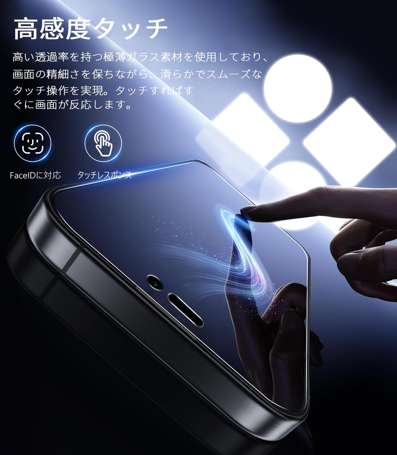 * 【高感度タッチ】あいふおん16 スマホフィルムの厚さ0.33ミリの薄型デザインで、高硬度を維持しながら、お客様に滑らかな感触を与えることができます、タッチするとすぐに画面が開く。独自の電気メッキコーティング技術防水撥油層の形成のおかげで、汗、油汚れ、指紋を効果的に防ぎます。*指紋、水滴、汗、油、化粧などが付着しても簡単に拭き取ることができ、スマホの画面を新品のようにきれいに保つことができます。