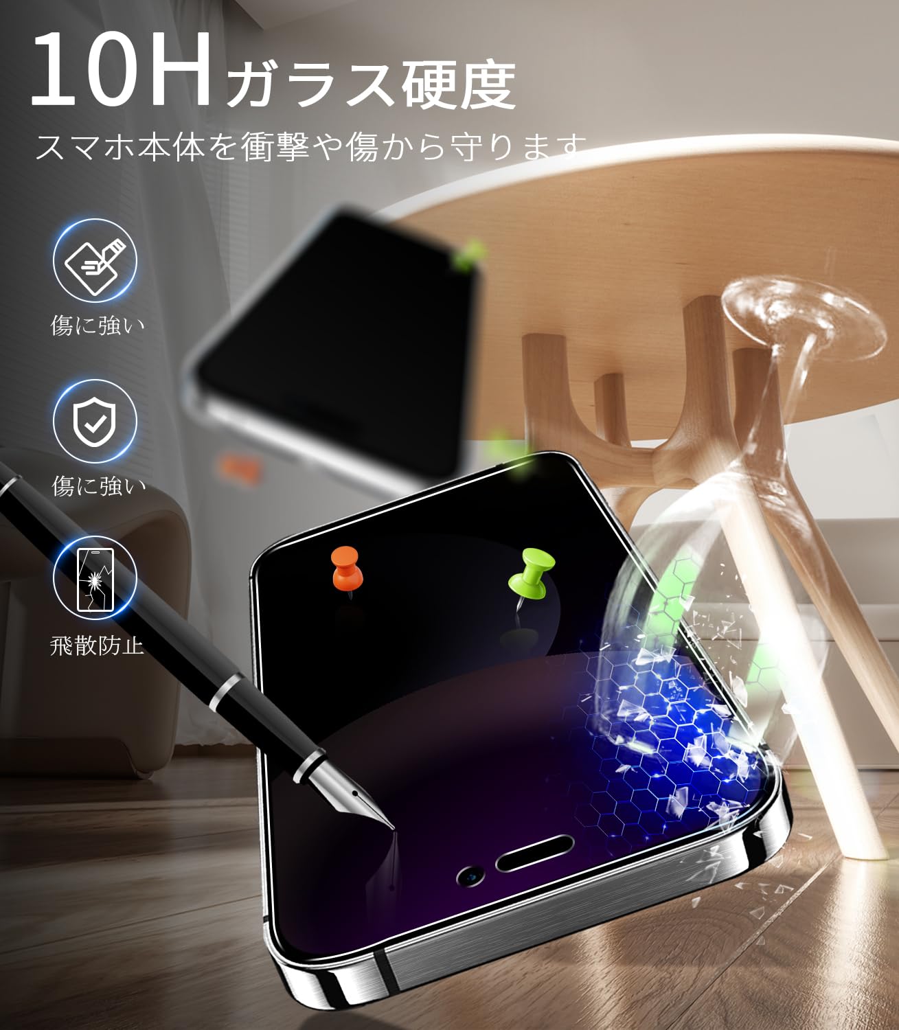 * 【10H 強化ガラス フィルムで究極の保護を】MINIKA用のiPhone15ガラスフィルムは最新のNa+/K+イオン交換技術により、ガラス内部に圧縮緩衝層を形成しています、衝撃にも強いため、鍵やナイフなどの鋭利なものがスマホのスクリーンに与える損害を効果的に防止し、スマホのスクリーンをよりよく保護することができます。万が一割れてしまっても飛散防止加工が施されているため、使用者の安全を確保する。また、15 フィルムはPhone本体の縁に適度な余白を持たせた設計で、剥がれや浮き上がりを防止し、スマホケースにも干渉せず快適にご使用いただけます。