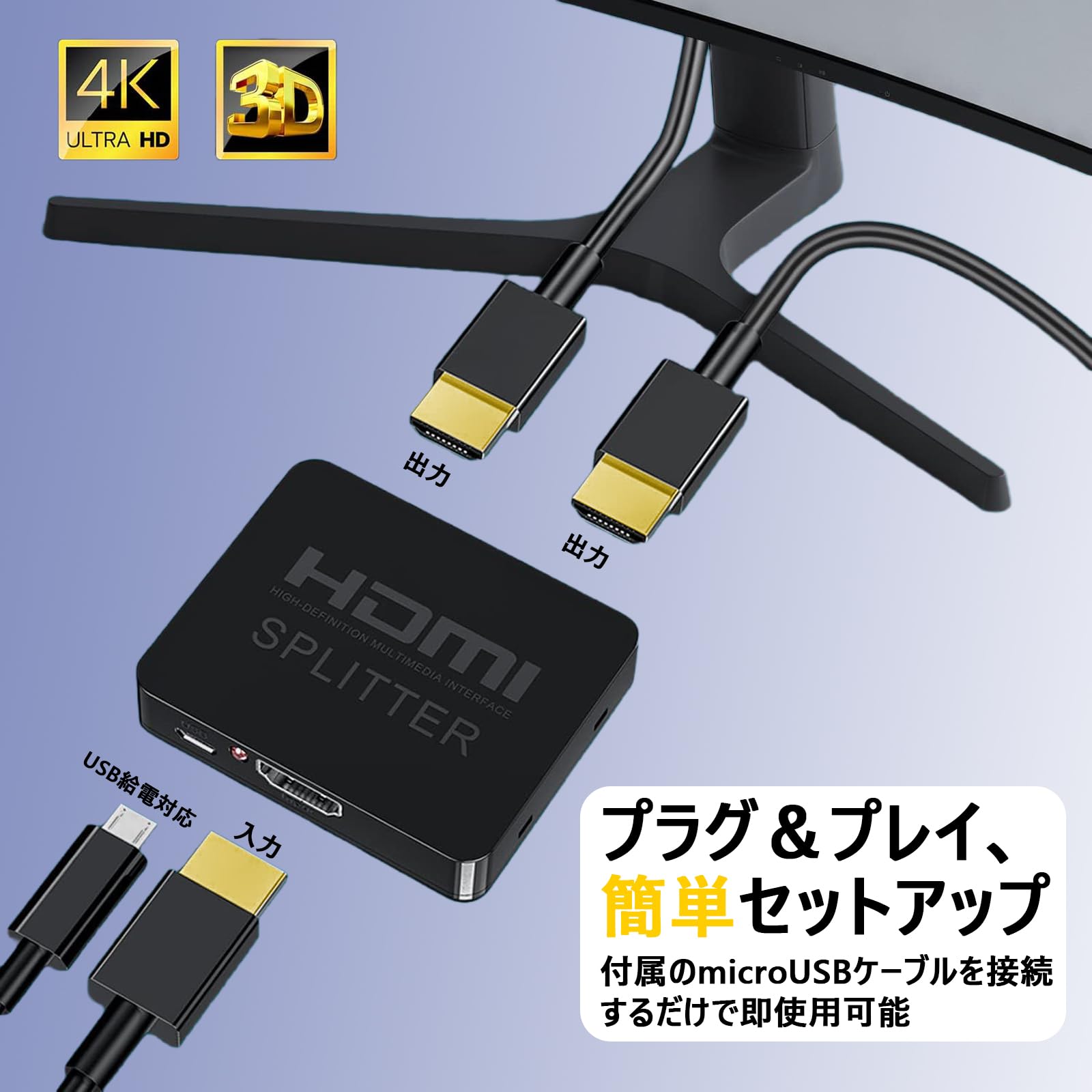 * 【 4K高画質対応 & 高速USBケーブル付属】解像度:4K@60Hz対応、3D映像・Deep Color 完全サポート、双画面完全同期により色味の差異・表示遅延ゼロ、付属の高品質USBケーブルで安定供給※4K出力には入力源・出力機器・ケーブル全ての4K対応が必要。