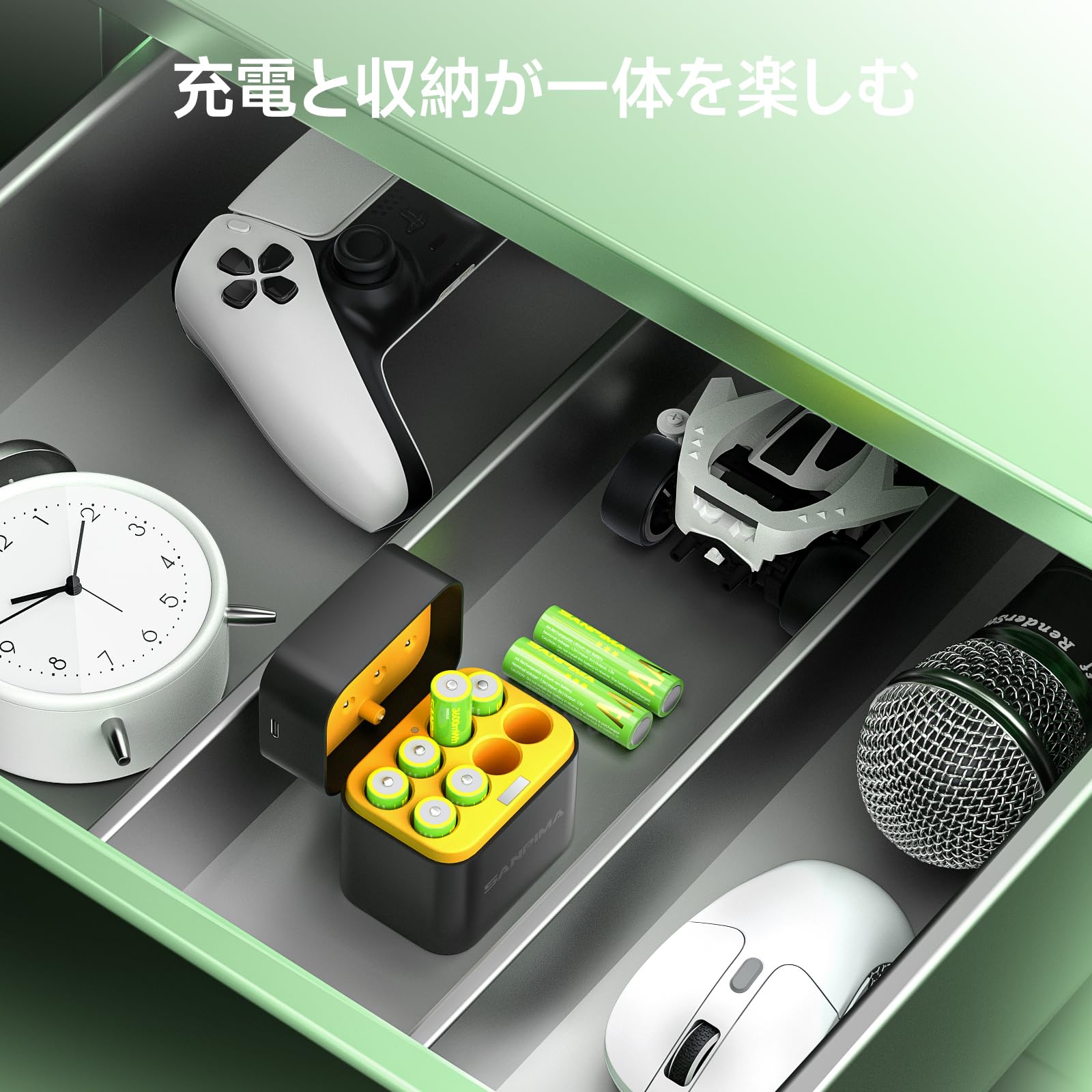 * 【集積充電と保存】リチウム電池充電器はマグネティックデザインを採用し、8つの独立した充電スロットを持ち、充電と保存を一体化させ、電池の保存と持ち運びをより便利にし、自由に1つ~8つの組み合わせでAAリチウム電池を充電するとサポートします。