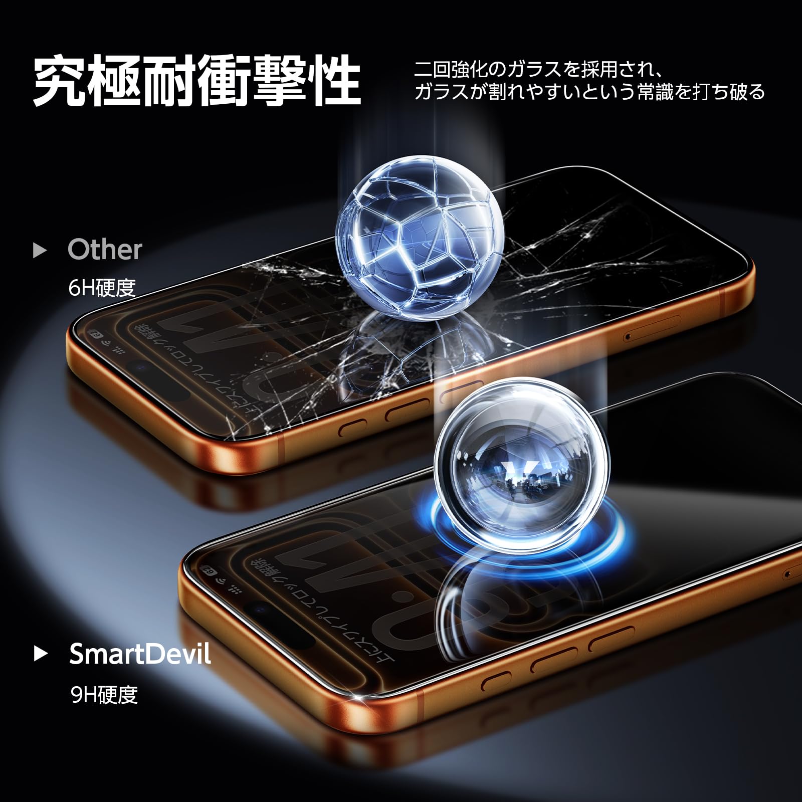 【覗き見防止】SmartDevil iPhone17Pro用ガラスフィルム 2枚セット プライバシー保護 ガイドボックス付き 貼り付け超簡単 自動除塵 米軍MIL規格 黒縁なし 落下保護 滑らかな手触り 指紋防止 iPhone17Pro 対応 保護フィルム