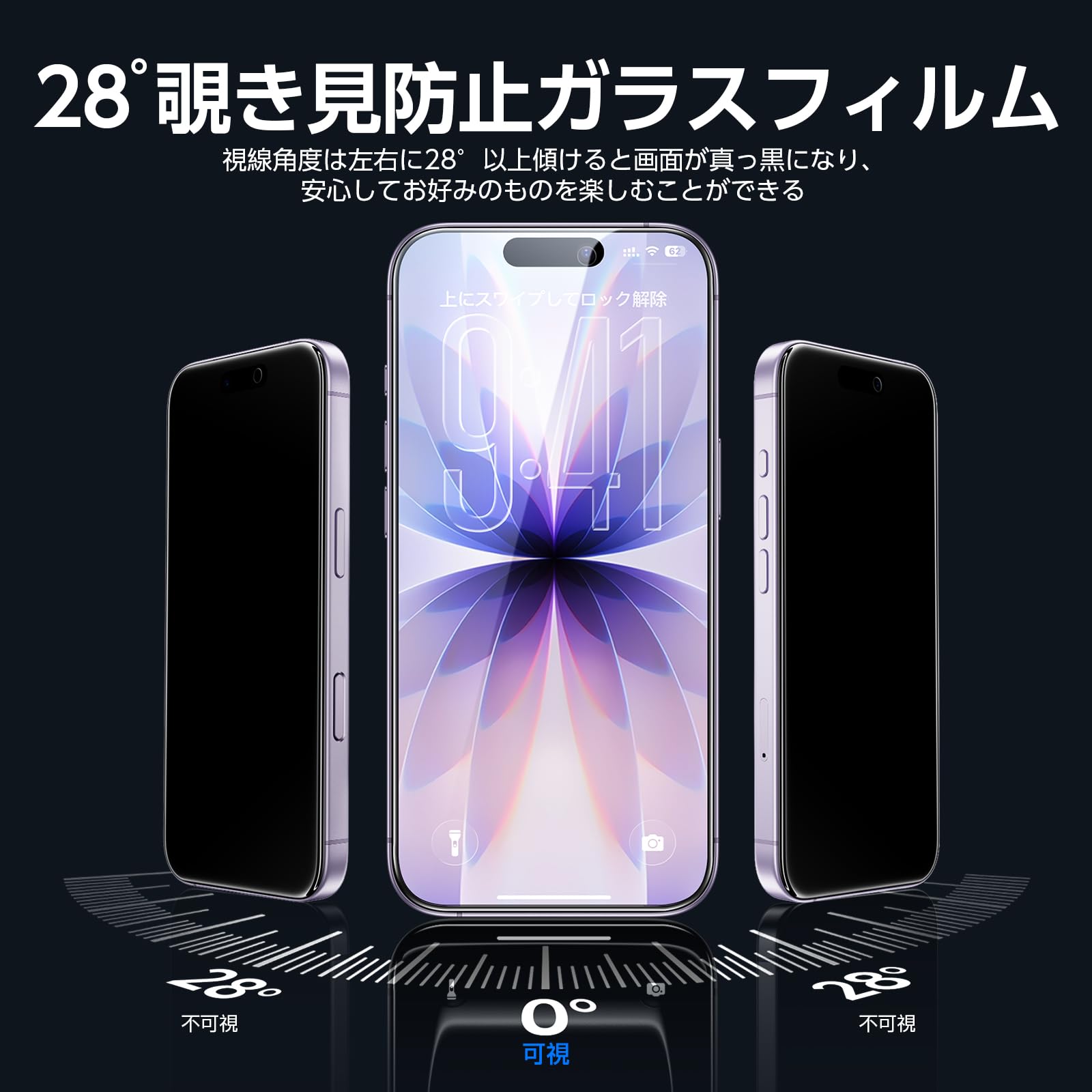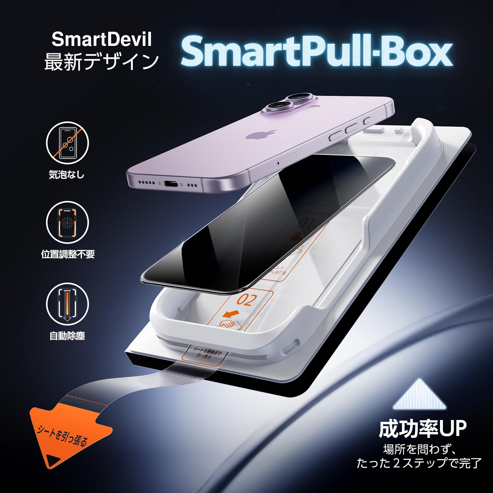 【覗き見防止】SmartDevil iPhone17 用ガラスフィルム 2枚セット プライバシー保護 ガイドボックス付き 貼り付け超簡単 自動除塵 米軍MIL規格 黒縁なし 落下保護 滑らかな手触り iPhone17対応指紋防止 保護フィルム