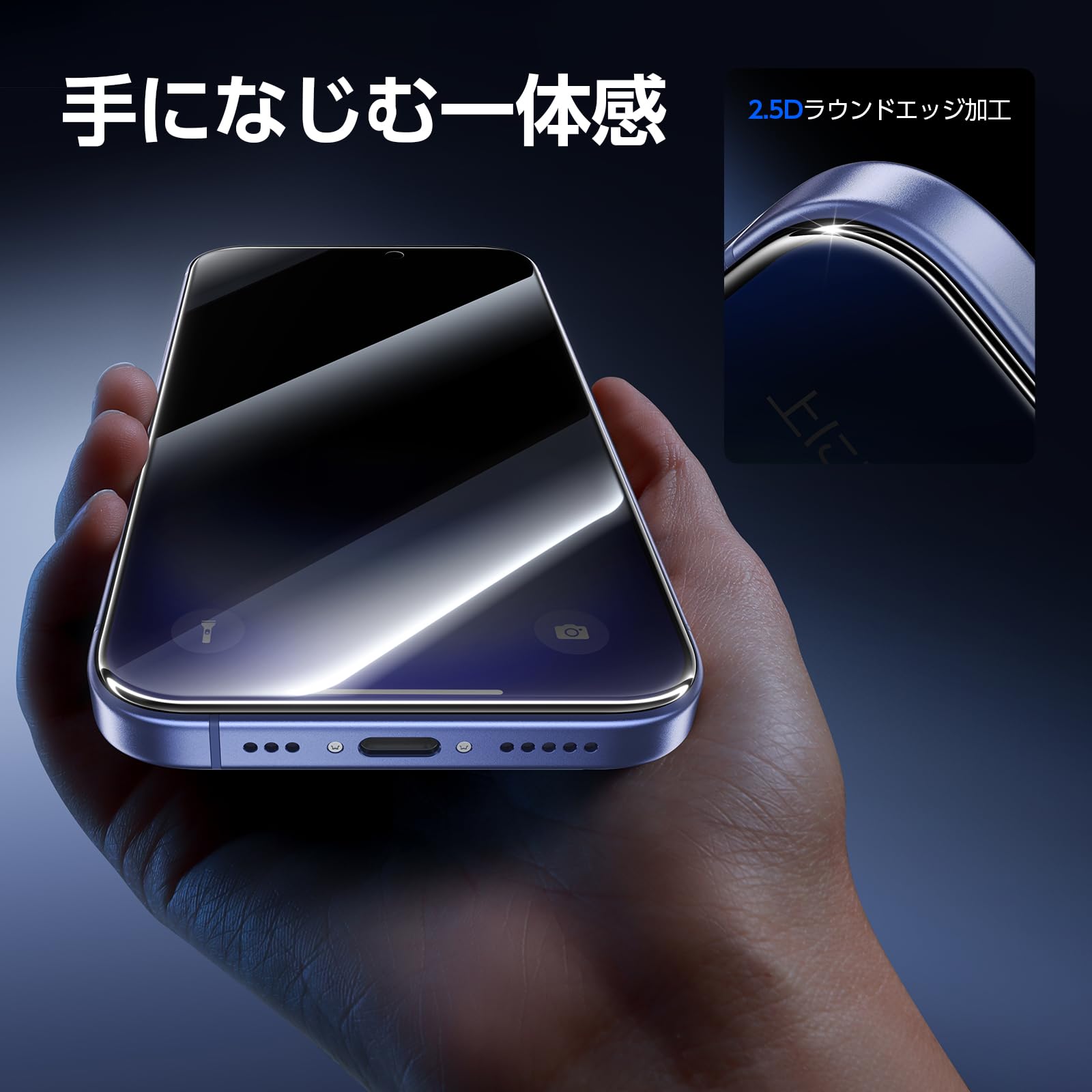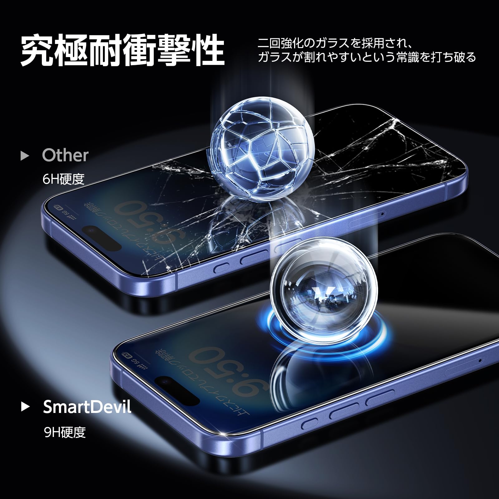 【覗き見防止】SmartDevil iPhone16用ガラスフィルム 2枚セット プライバシー保護 ガイドボックス付き 貼り付け超簡単 自動除塵 米軍MIL規格 黒縁なし 落下保護 滑らかな手触り 指紋防止 iPhone16対応 保護フィルム