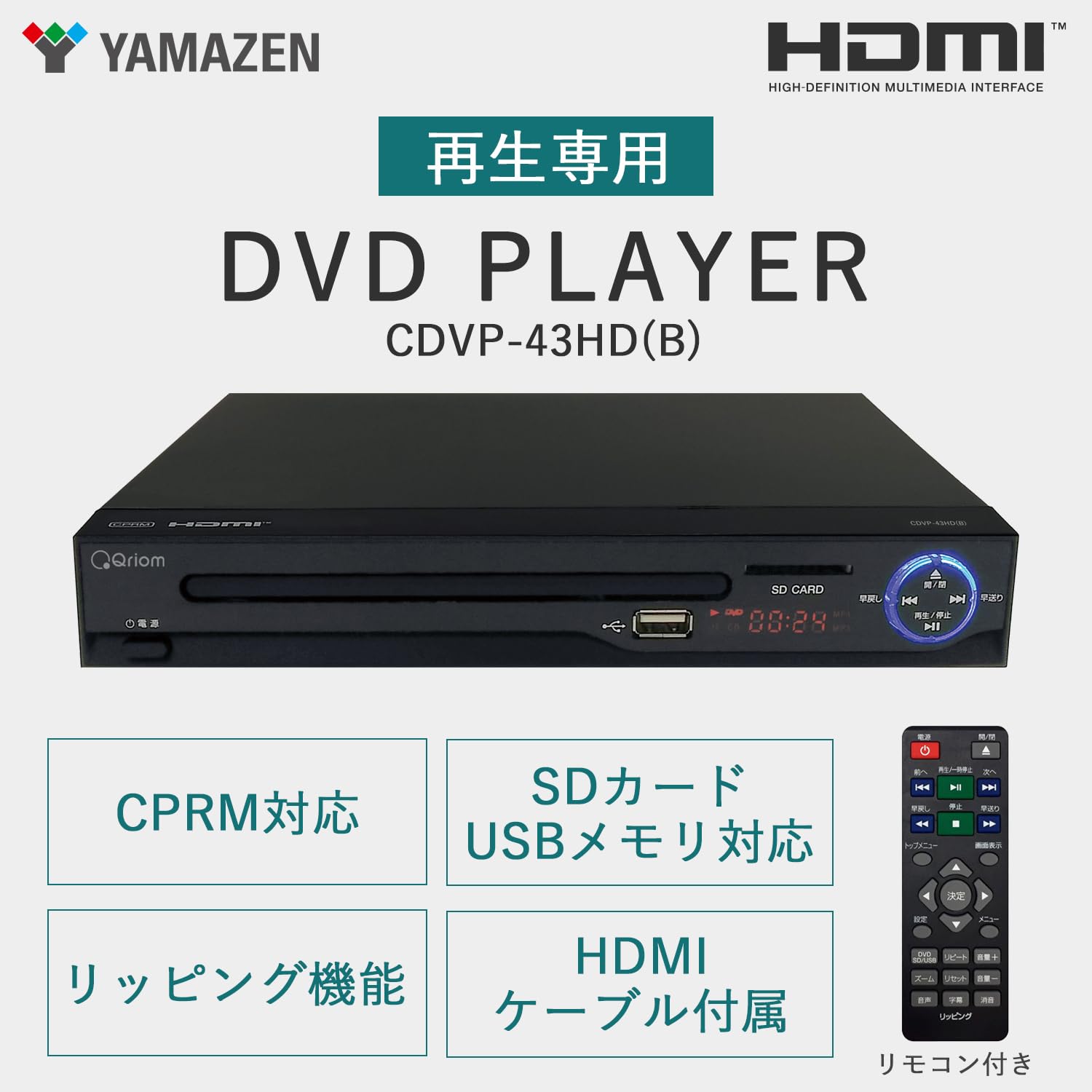 [山善] DVDプレーヤー 再生専用 CPRM対応 HDMI対応 リッピング機能 SDカード/USBメモリ HDMIケーブル/AVケーブル/リモコン付き CDVP-43HD(B)