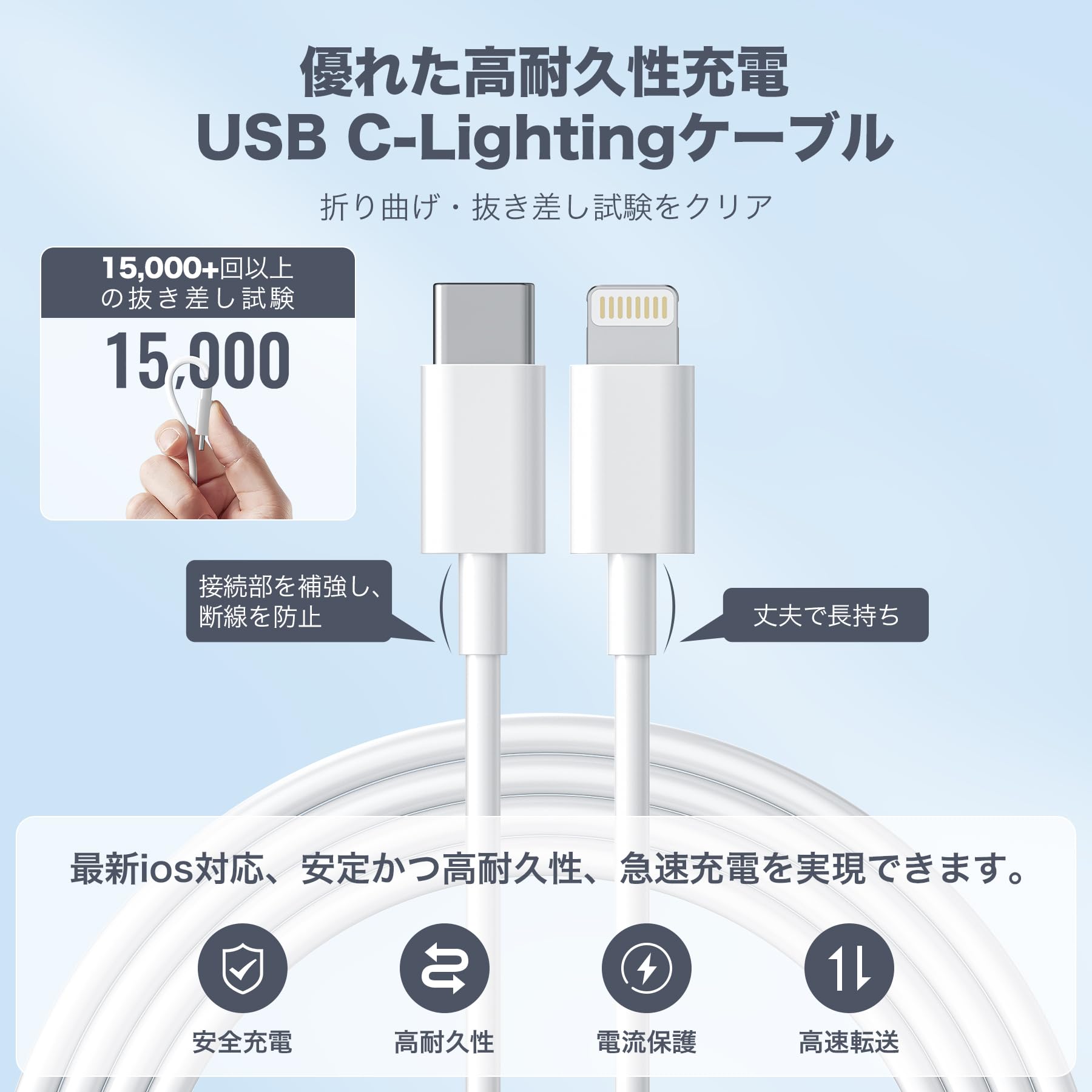 * 【PSE認証取得済み・安心安全設計】 本製品は日本の電気用品安全法に基づく「PSE認証」を取得済み。過電流、過電圧、過熱、過充電、ショート防止などの多重保護機能を搭載しており、iPhoneやiPadに最適な電流を自動で供給し、安全かつ安定した充電を実現します。