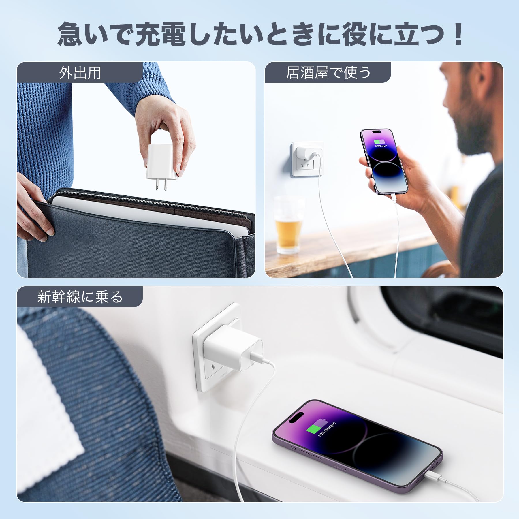 * 【20W iPhone用PD急速充電器付き】 最新のPower Delivery 3.0(PD3.0)技術を搭載したUSB-C充電器により、Apple純正アダプターの約3倍の速度で急速充電が可能。テスト済み:iPhone 13をわずか30分で最大60%まで充電できます。Quick Charge 4.0/3.0/2.0とも互換性があり、多くのデバイスに対応。「ご注意」本製品はUSB-C急速充電器とMFi認証済みLightningケーブルのセットです。