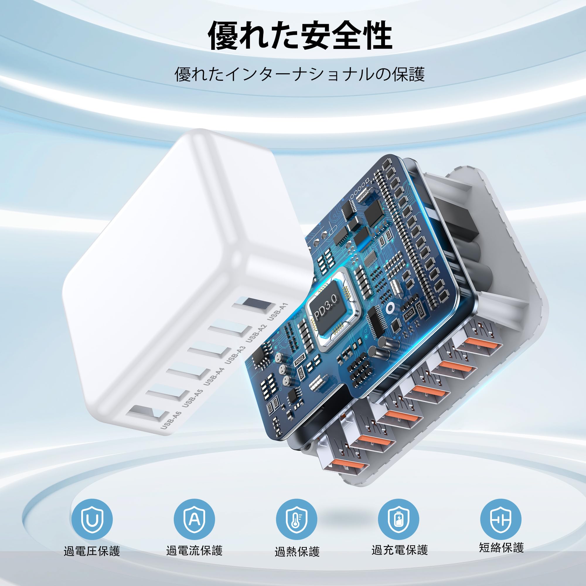 USB コンセント【PSE技術基準適合/6台同時充電/旅行に最適】15W USBA スマホ充電器 携帯に便利 USB電源アダプター iPhone/Galaxy/Android/スマートフォン タブレットなどその他機器対応